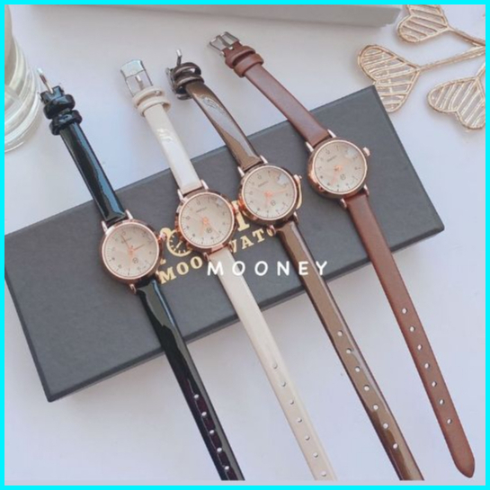 Mooney Jam Tangan Wanita Barsh Tali Kulit Mini Angka Jam Analog Fashion Korea Ca142