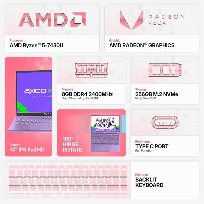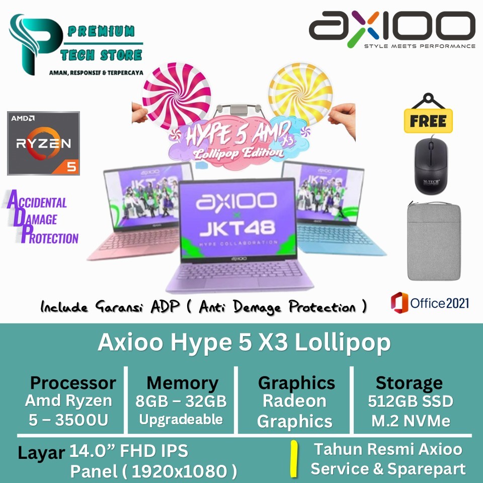 Laptop Axioo Hype 5 X3 Lolipop AMD Ryzen 5 3500U 16GB 512GB FHD IPS Windows 11 Pro