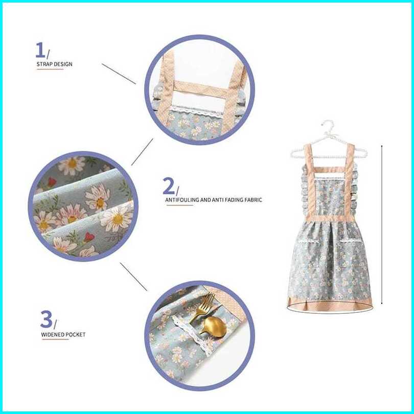 V2 - Celemek Dapur Anti Minyak Motif Bunga Apron Masak Korean Style