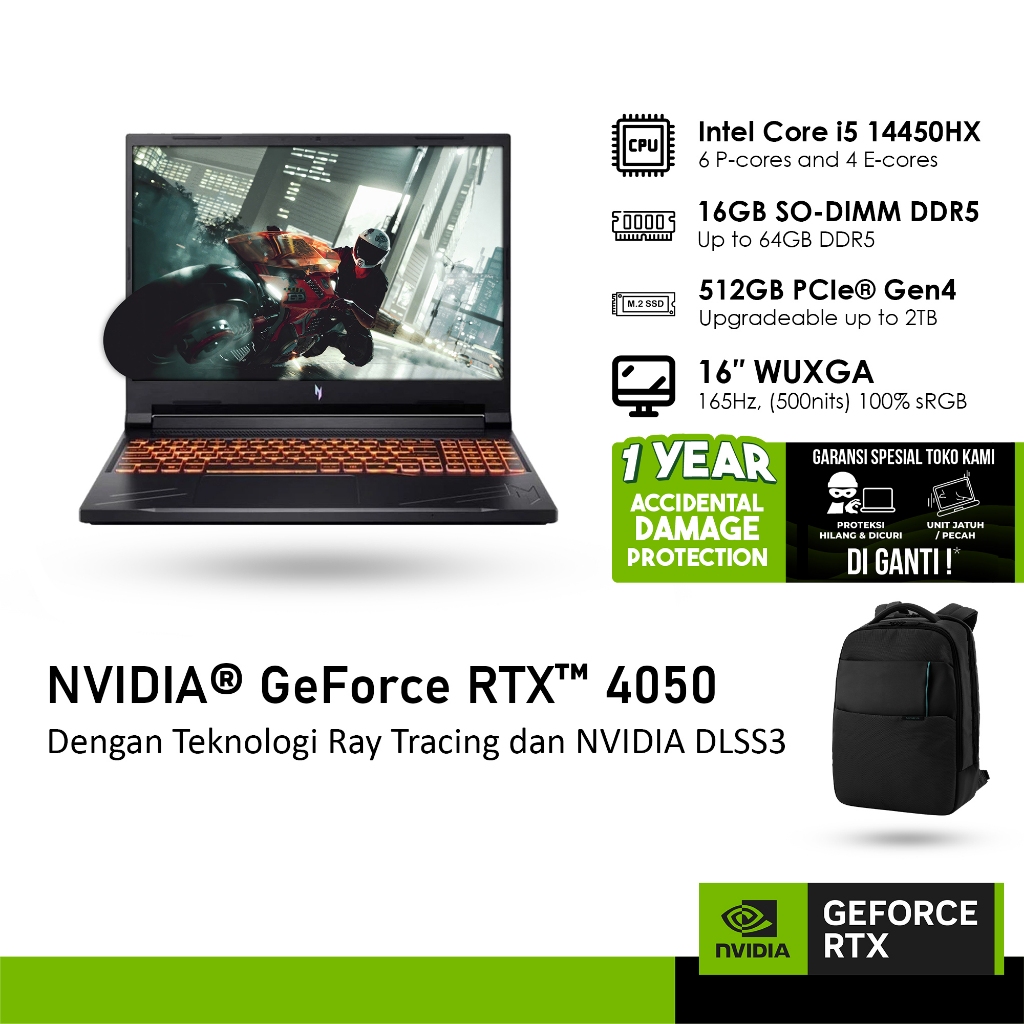 ACER NITRO V 16 ANV16-71-50MN GeForce RTX™ 4050 6GB - i5 14450HX 16GB 512GB WINDOWS 11 16.0WUXGA