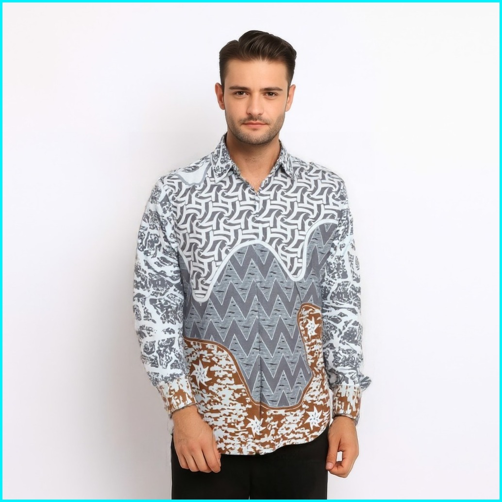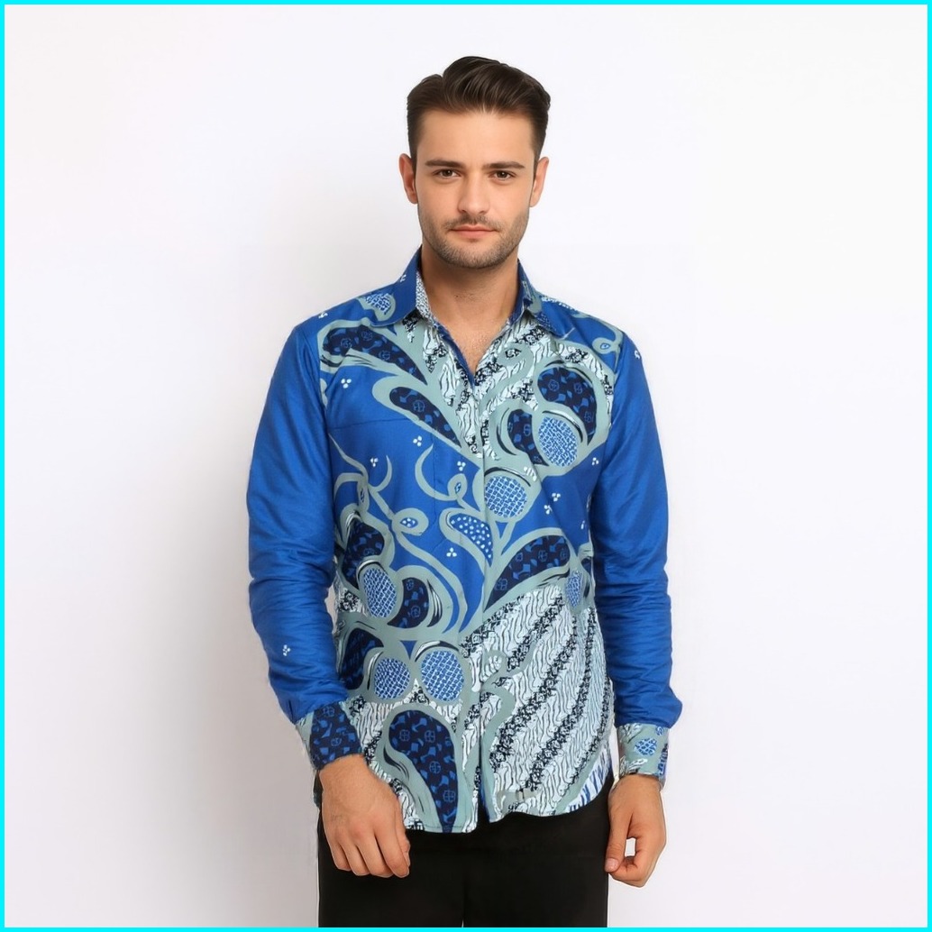 Slimfit Batik Pria Lengan Panjang Modern Kemeja Batik Slimfit Modis Kekinian Kemeja Batik Pria Slimfit Modern Lengan Pan