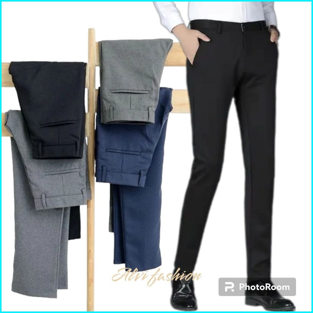 Celana Kantor Formal Panjang Kerja Pria Slimfit Bahan Semi Wool Premium Tebal Lembut