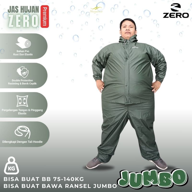 Jas Hujan Setelan Super Jumbo / Big Size Pria Dan Wanita Bahan Pvc Karet Tebal Kuat Lentur Elastis Bb 85Kg_ Bb 140 Kg (X