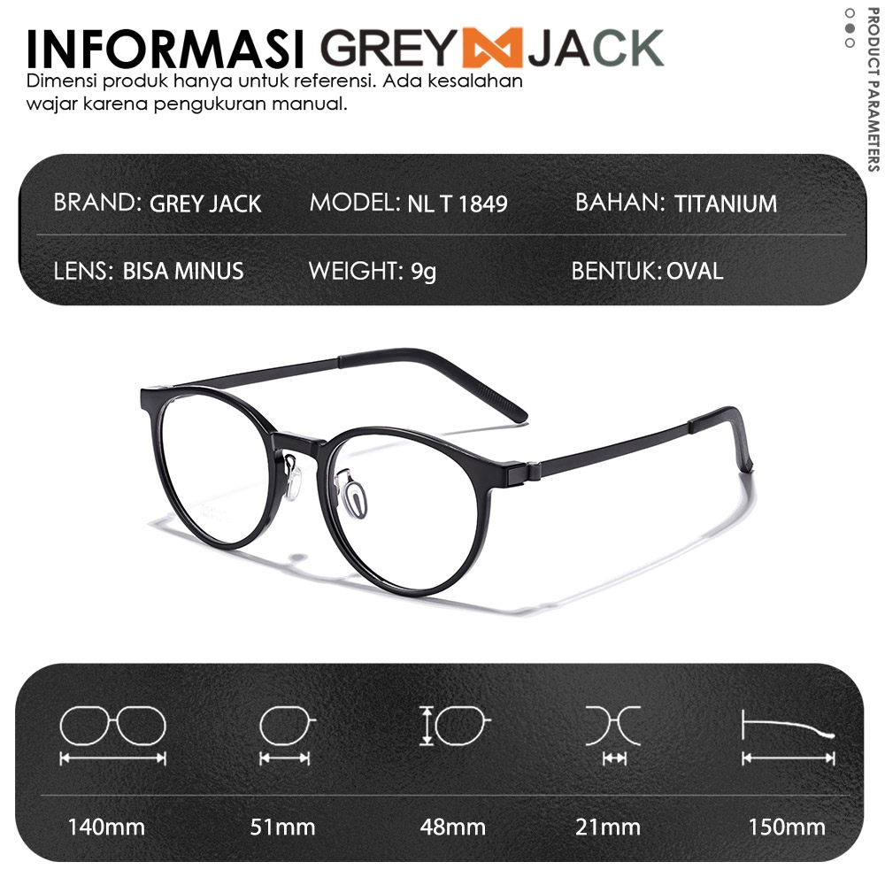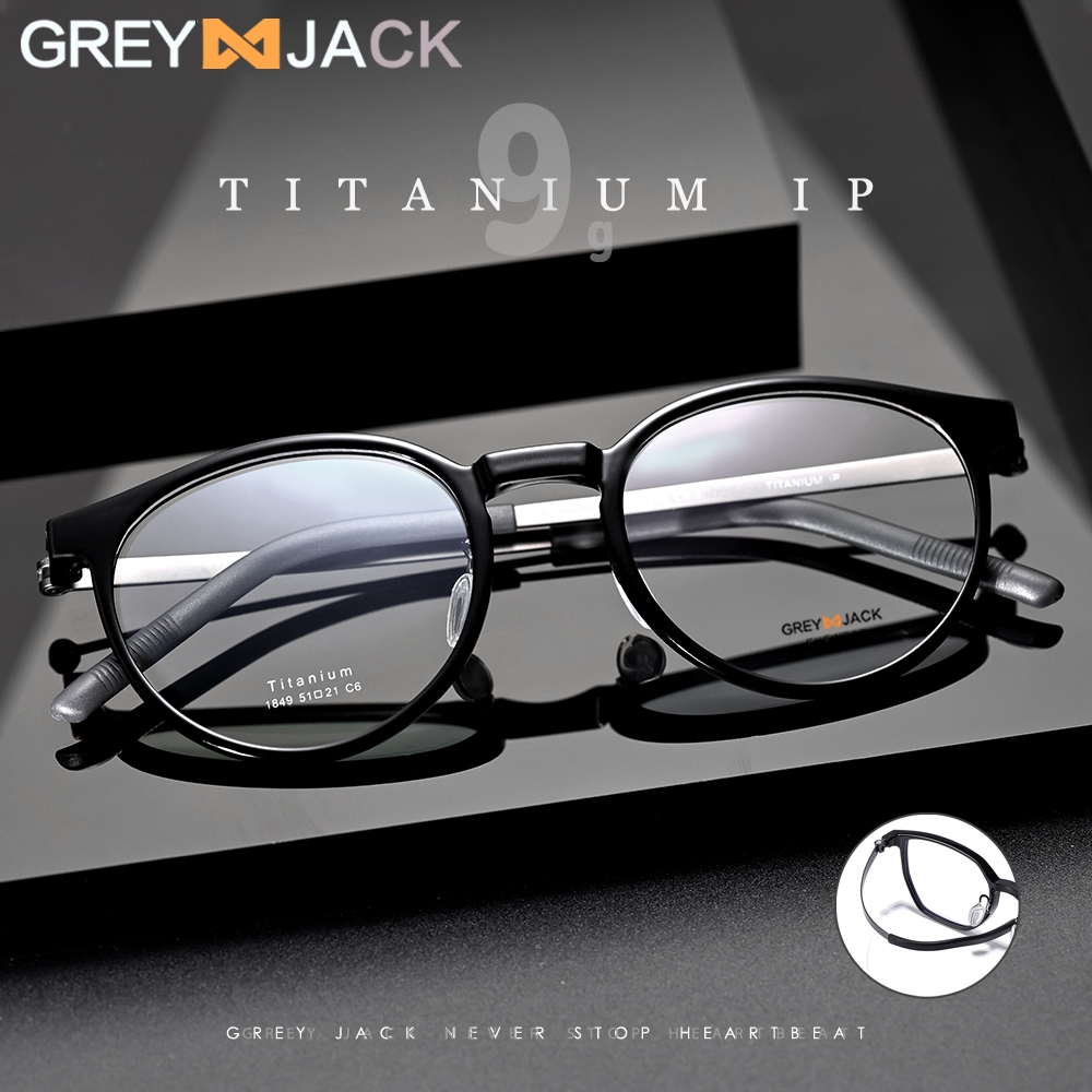 Grey Jack Kacamata Frame Titanium Model Oval Bulat Ringan Kokoh Bisa Minus Antiradiasi Blueray Bluecromic Lentur 1849