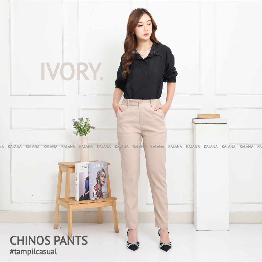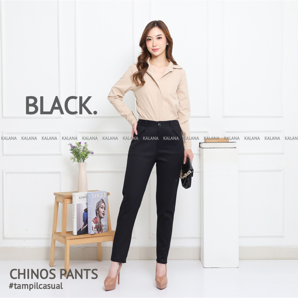 Celana Kerja Kantor Kuliyah Wanita Bahan Chinos Bahan Melar Original Premium by Kalana