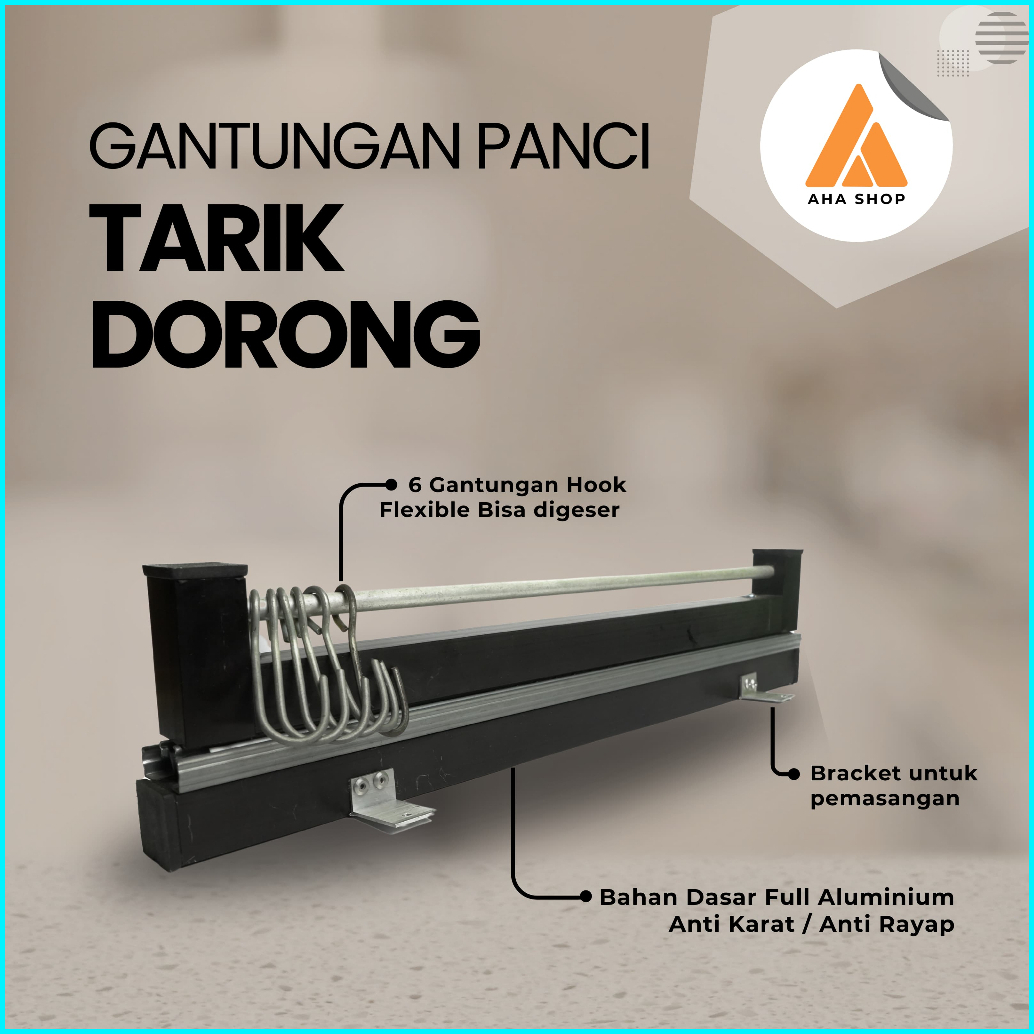 Rak Gantungan Kolong Panci Rel Tarik Dorong Plus Hooks Kitchen Set Minimalis Aesthetic