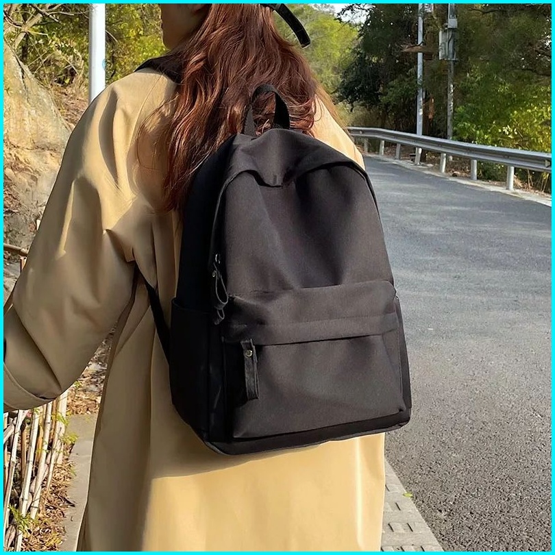 Tas Laptop Ransel Tahan Air Ransel Polos Tas Sekolah Warna Hitam Polos