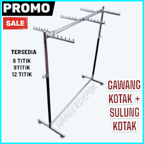 Gantungan Baju Gawang Kotak Ukuran 120cm Suling Kotak 6 Titik 6pcs