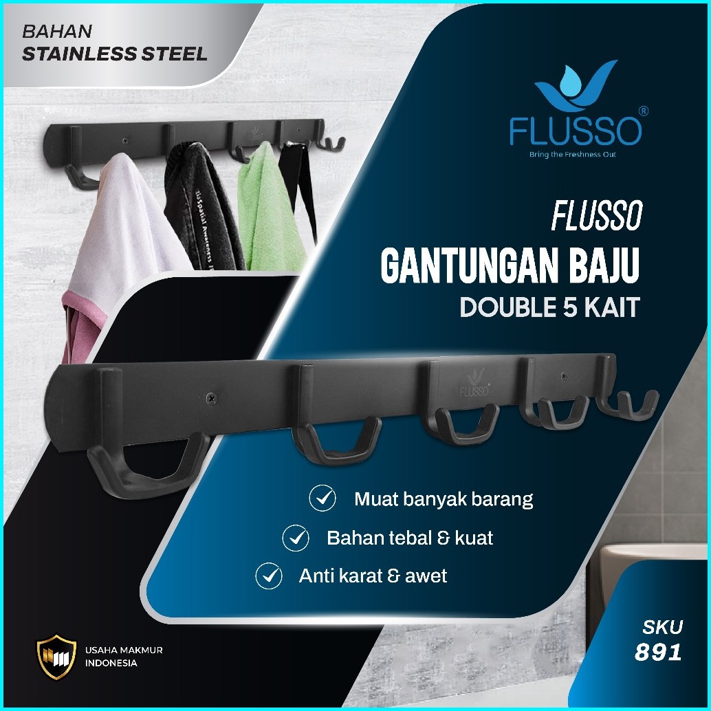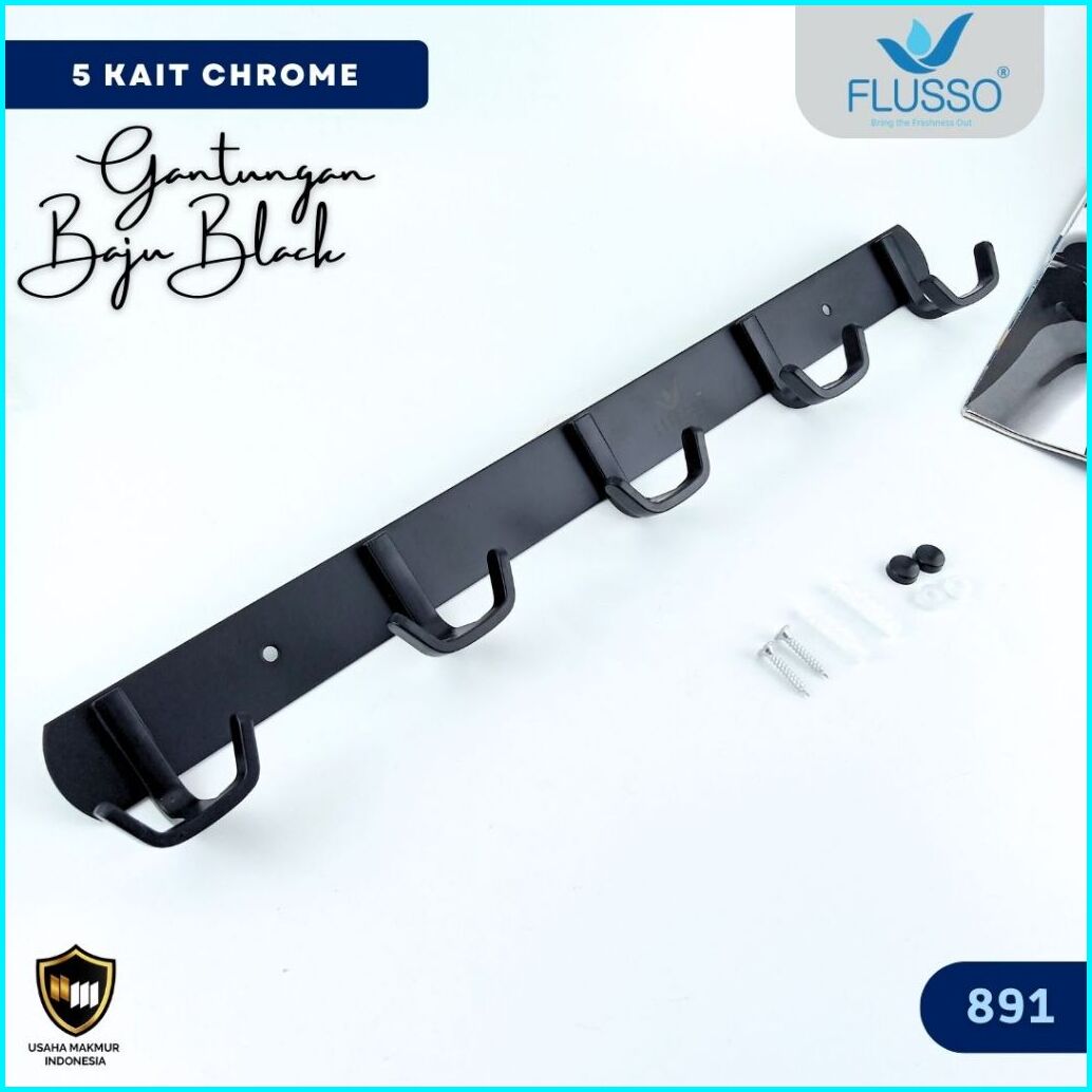 Flusso Gantungan Baju 5 Kait Black Premium Stainlesss Kapstok Anti Karat 891
