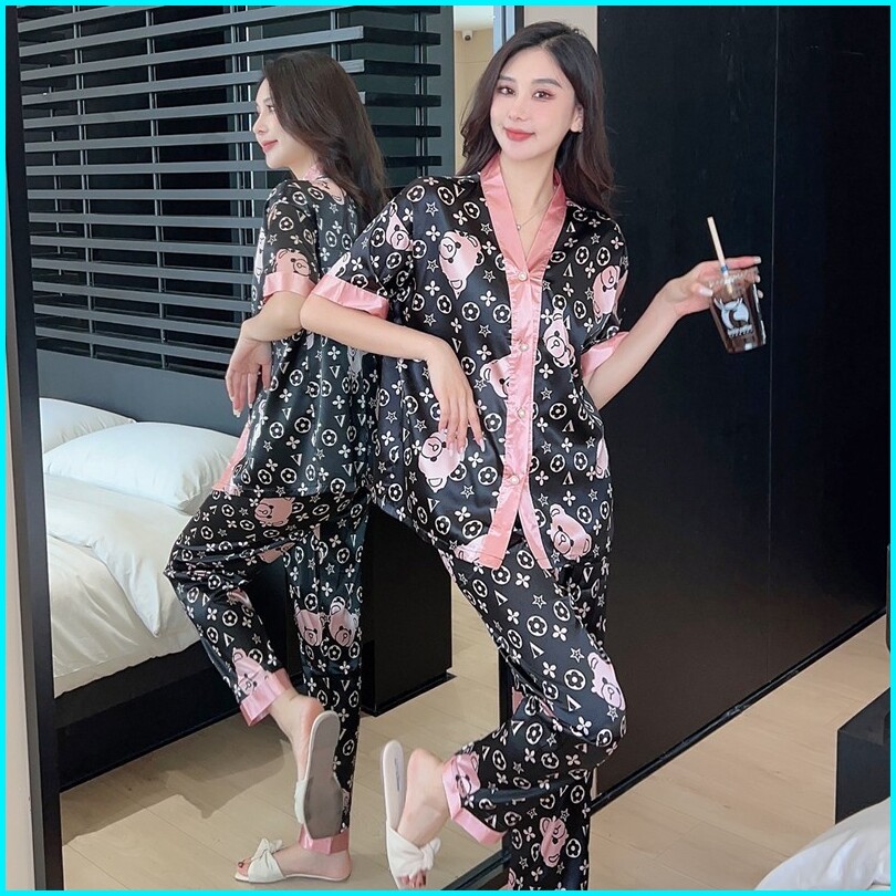 Baju Tidur Piyama Pajamas Wanita Baju Tidur Wanita Piyama Piyama Satin Wanita Dewasa Import Full Kancing Motif Terbaru C