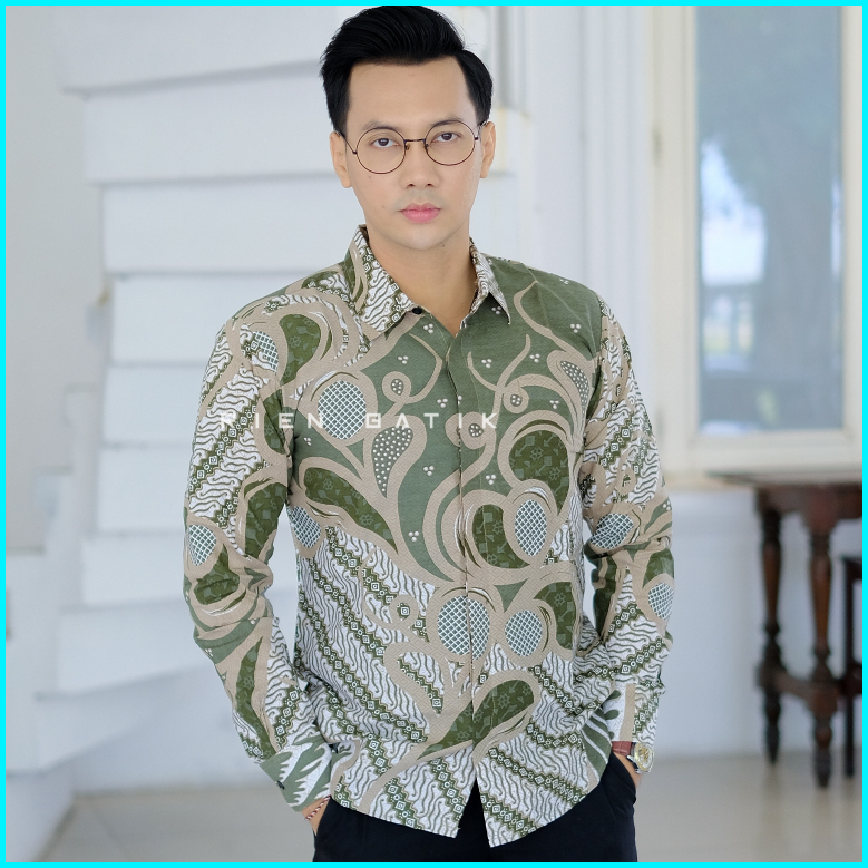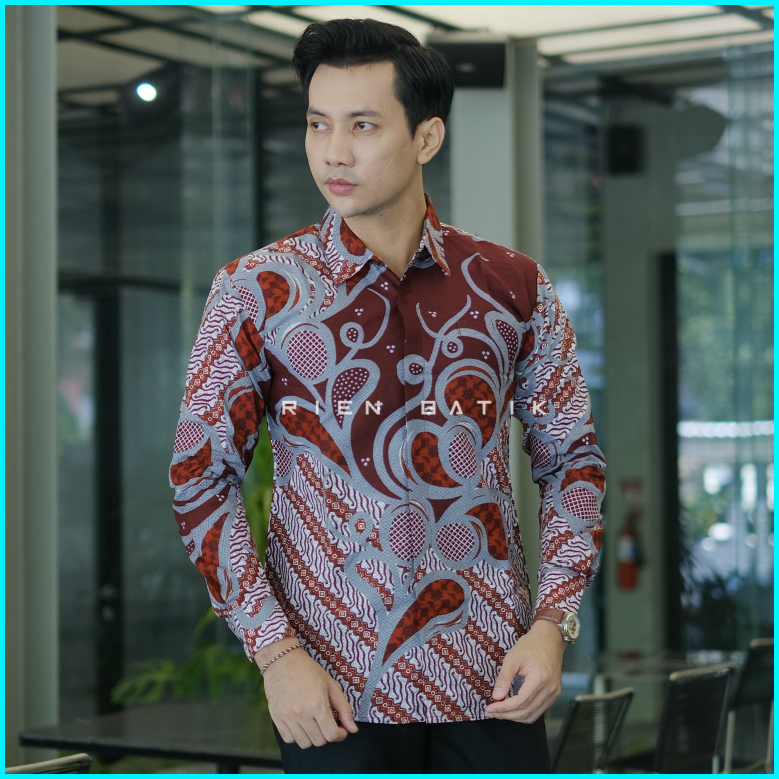 Kemeja Batik Slimfit Pria Lengan Panjang Bahan Katun Lapis Furing Premium Motif Rien Batik Sragenan
