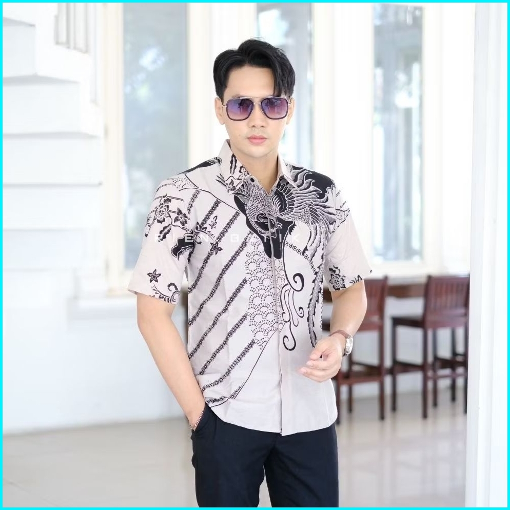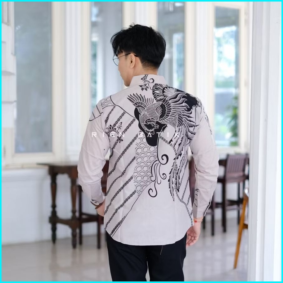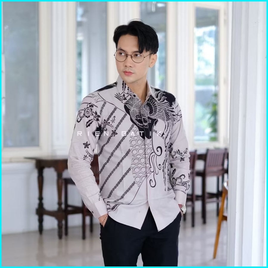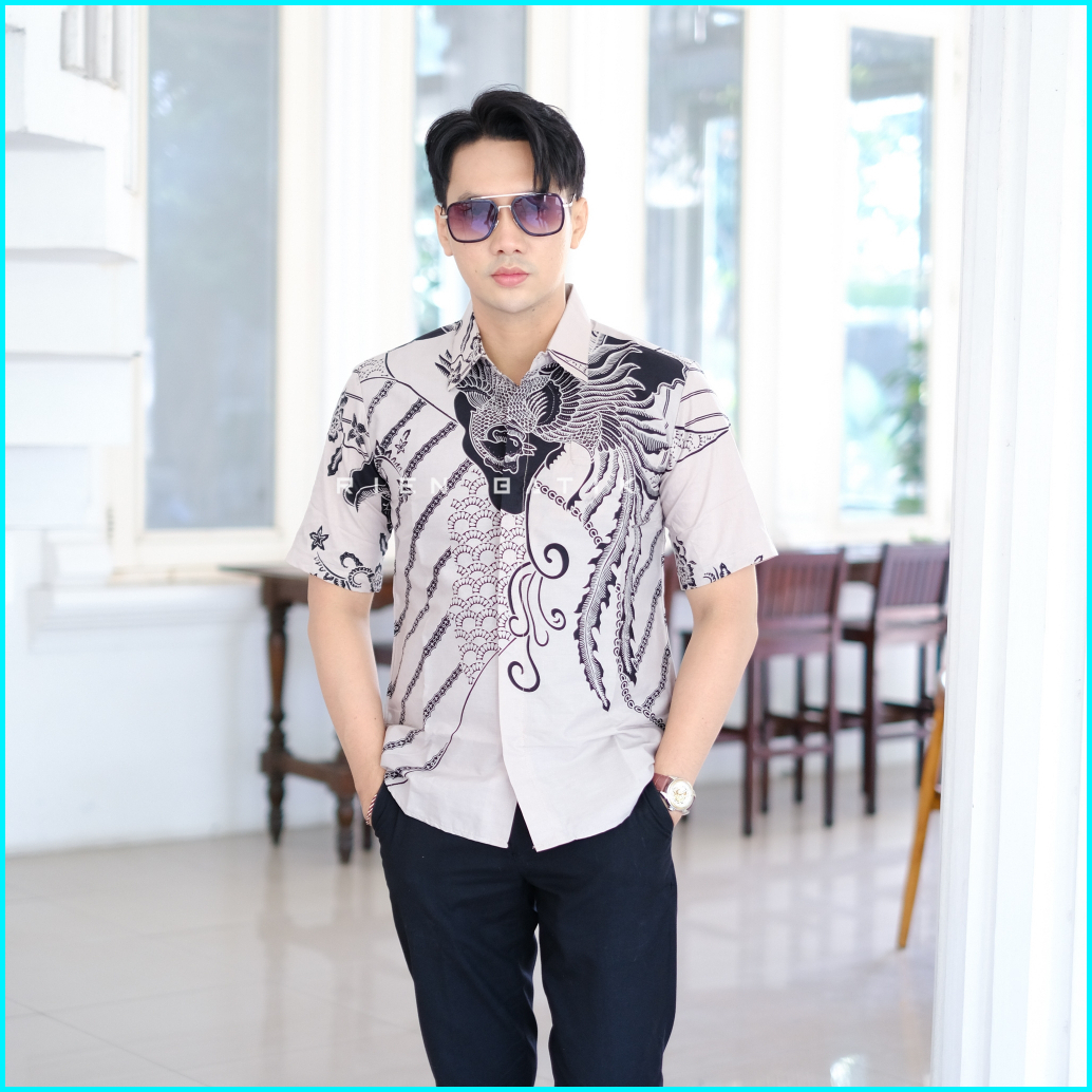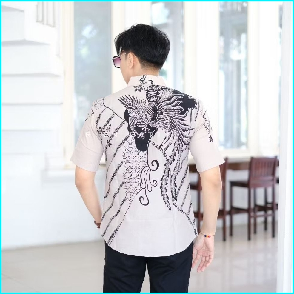 Kemeja Batik Slimfit Pria Warna Cream Bahan Katun Lapis Furing Premium Motif Jacob