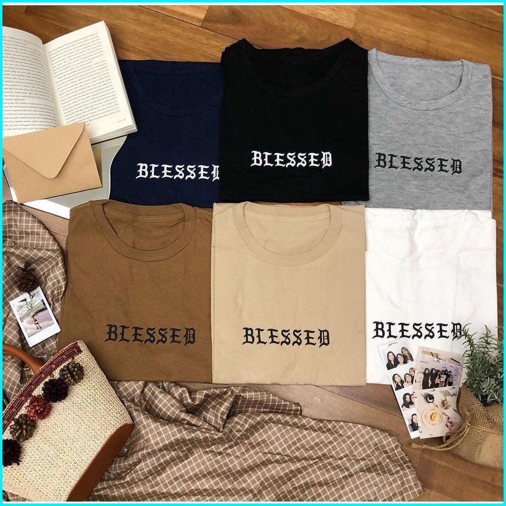 Kaos Blessed Beige Mocca Lilac Hitam Navy Putih Abu Baju Kaos Tshirt Tumblr Tee