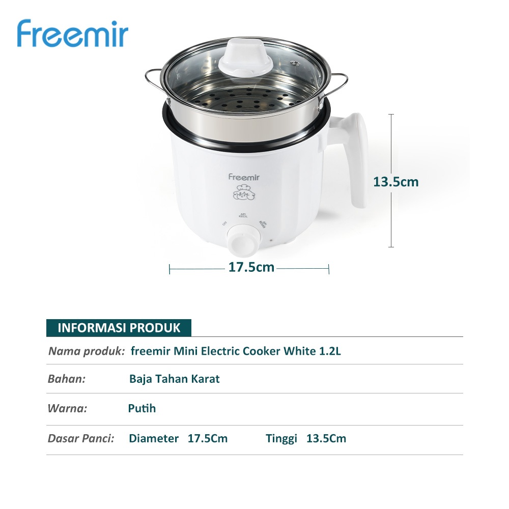 [DEALS] freemir electric Panci Kukusan Listrik Multifungsi Multicooker Low Watt Stainless Steel Anti Karat 1.2 Liter 17C