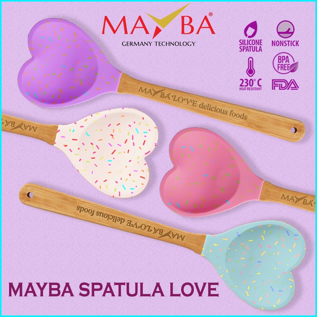 Mayba Spatula Love Silikon Tebal Anti Leleh - Sutil Tuner Silicone Bpa Free Paling Bagus Tuk Panci Set Mpasi Baby Bayi