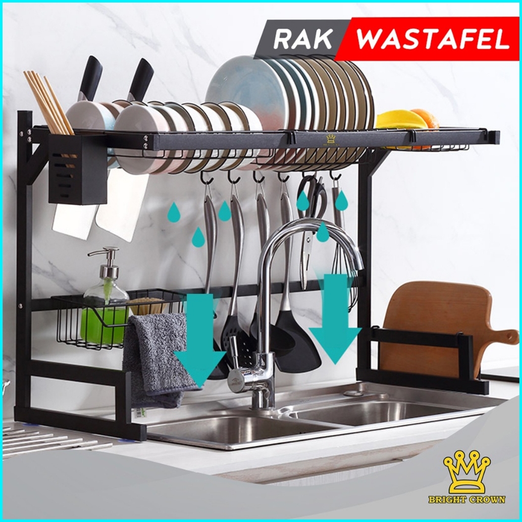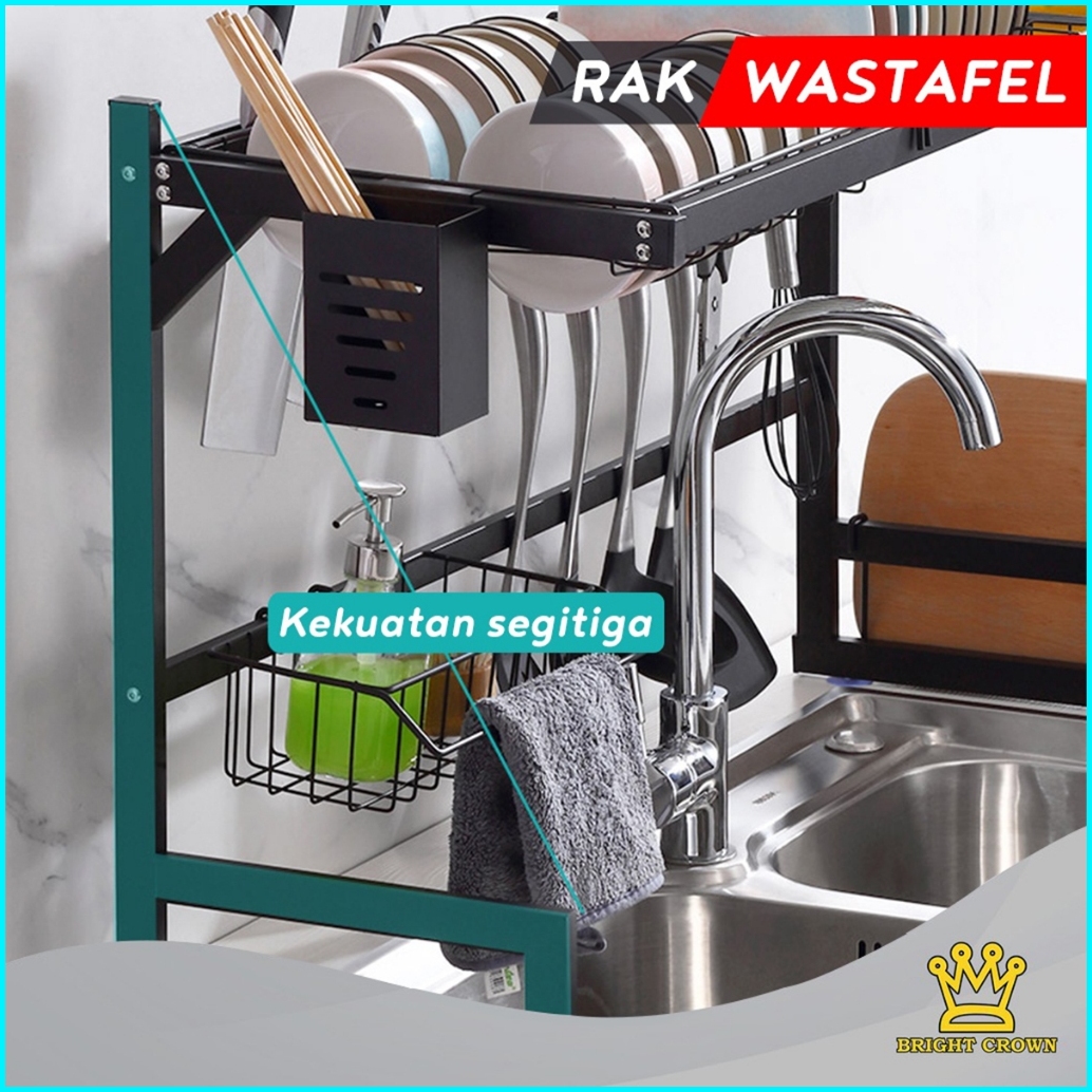 Bright Crown Rak Cuci Piring Wastafel Rak Piring Dapur Rak Dapur Stainless Kokoh Kuat 2 Ukuran