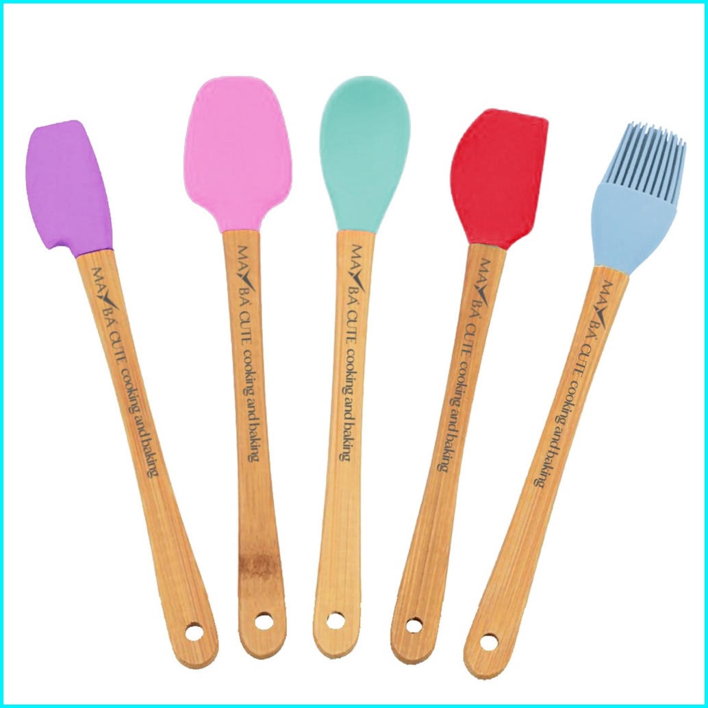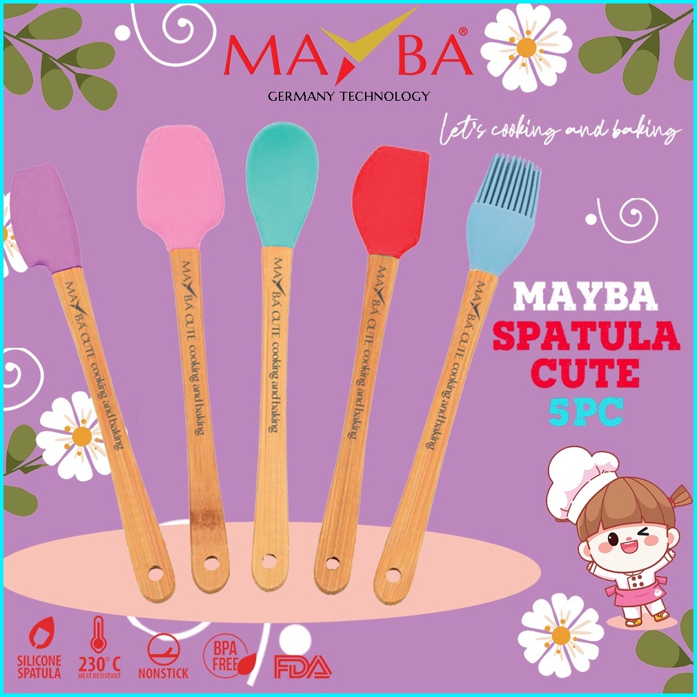 5 Pcs Spatula Set Silicone Mayba Cute Utensil Set Spatula Mini Kayu Baking Kuas Sutil Sendok Mini