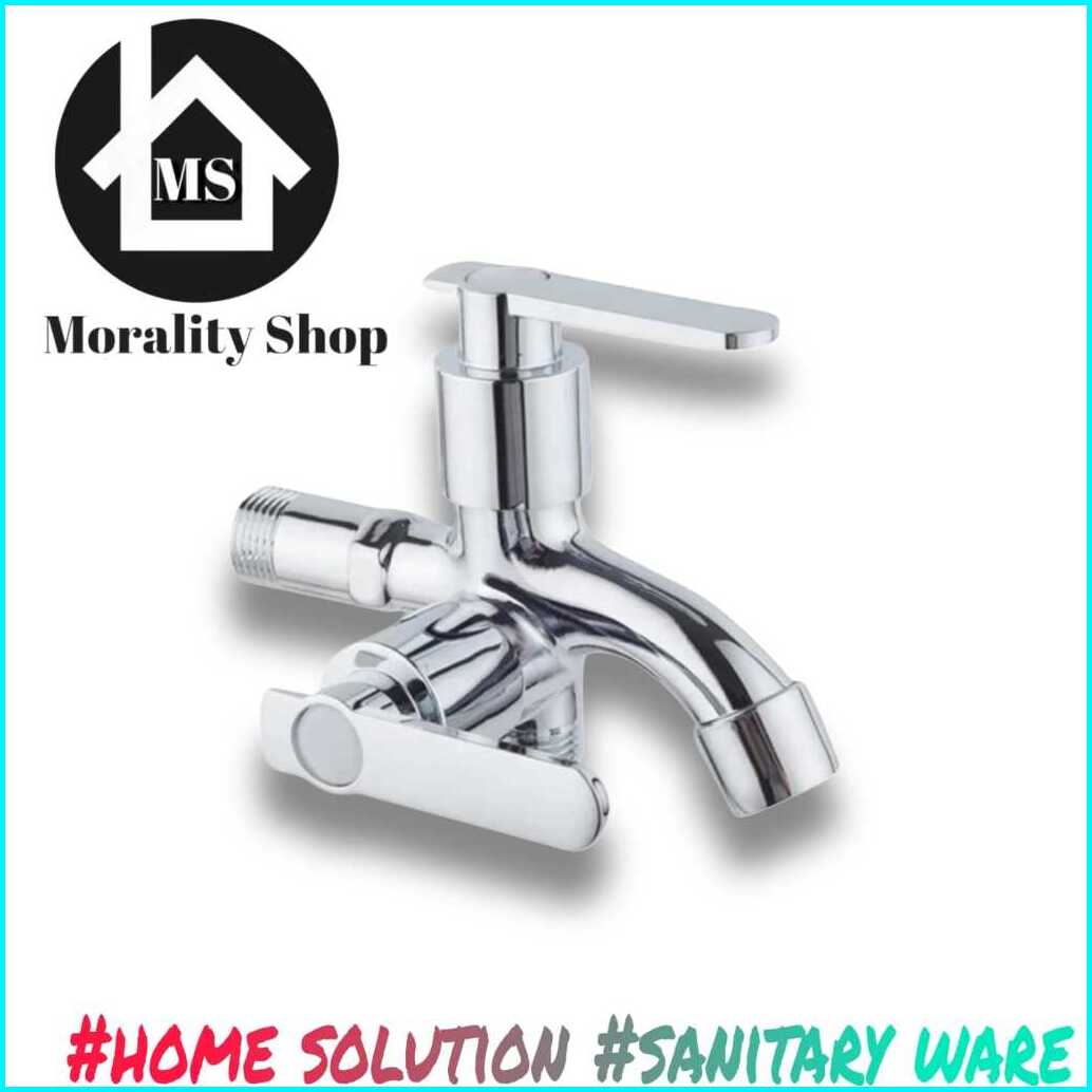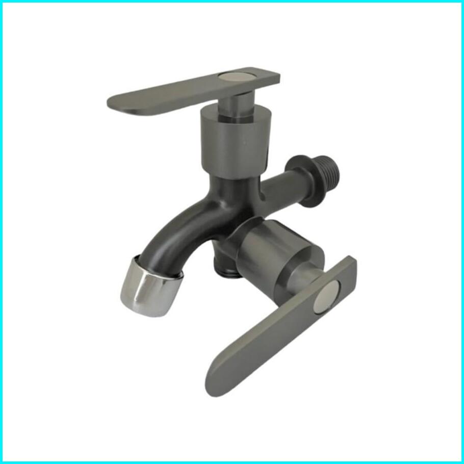 Kran Cabang 2 Fb Hitam Minimalis Murah - Keran Air Double 1 2 Inch Kamar Mandi Chrome Abu Grey Black