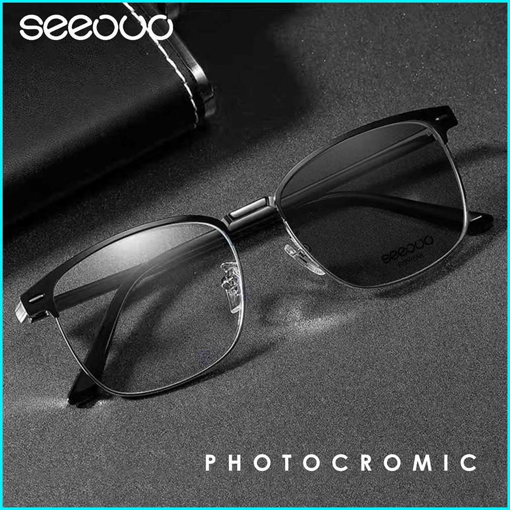 Seeouo Kacamata Photocromic Model Kotak Metal Tr Anti Uv Laki-laki Dan Wanita Bisa Minus Ringan Stylish 8951