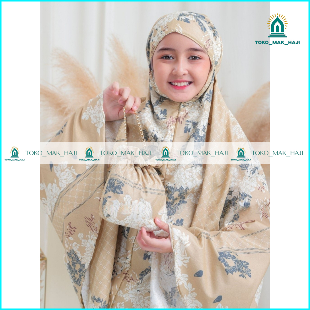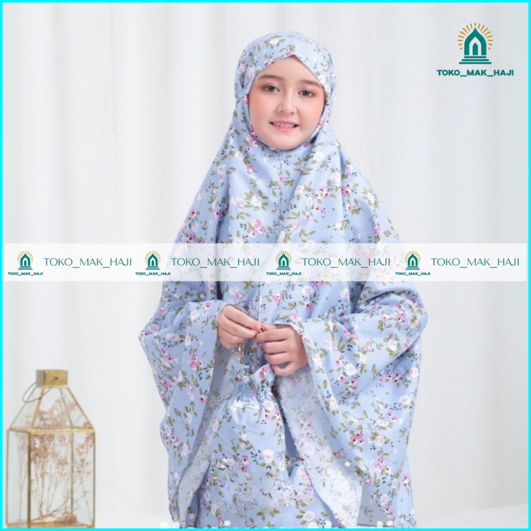 Toko Mak Haji Mukena Anak Tanggung Azura Hasya 2in1 Resleting Travel Katun Motif