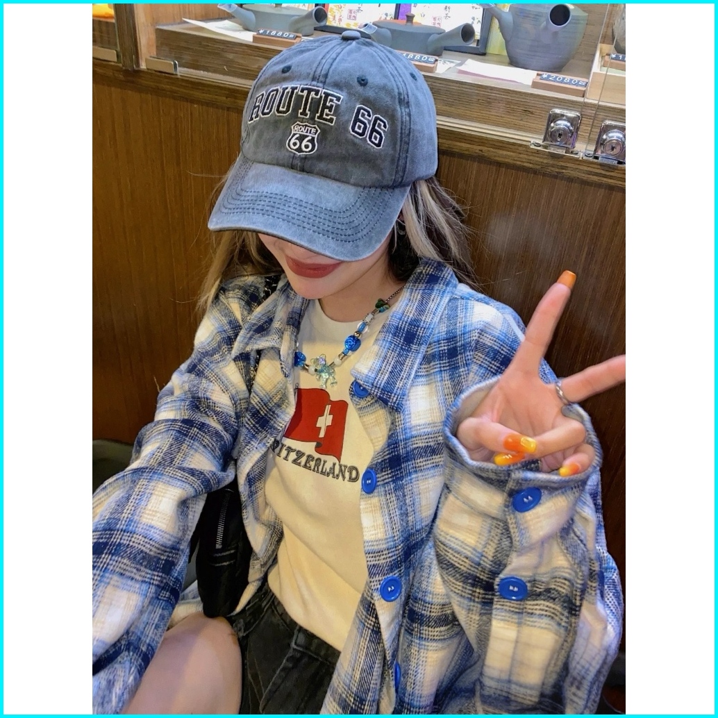 Topi Baseball Topi Pria Bordir Route 66 Baseball Cap Korean Style Topi Wanita Cahaya A43