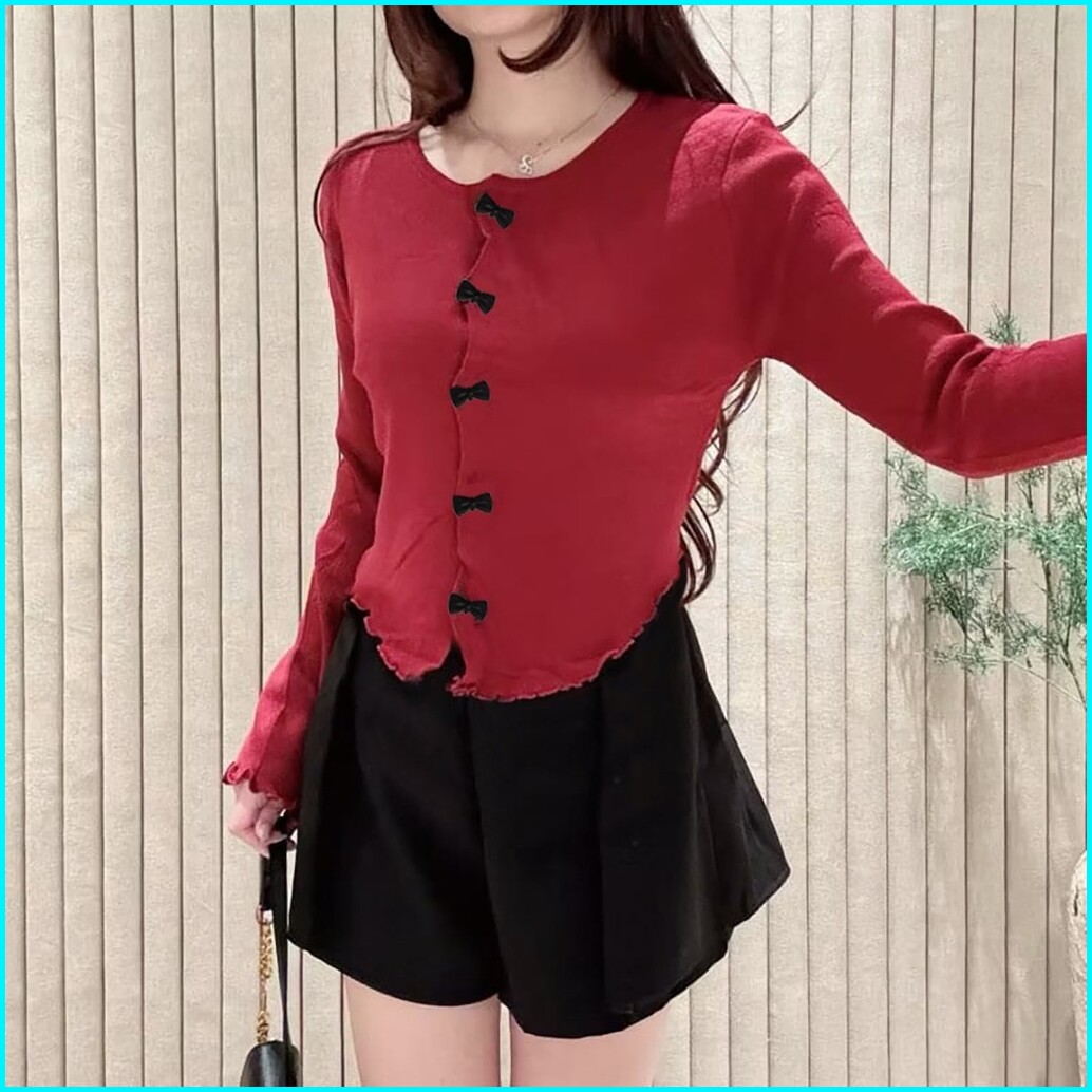 Vallina Outfit - Ribbonie Knit Premium Cardi Atasan Wanita Rajut 3d Aksesoris Pita Outerwear Cardigan Outer Wanita Remaj