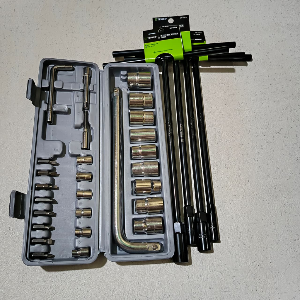 [mall] Tekiro Kunci T 4 Pcs 8-10-12-14mm + Kunci Shock 1 Set Lengkap 27 Pcs + Ring Pas 1set Kunci Bengkel Kunci Full Set