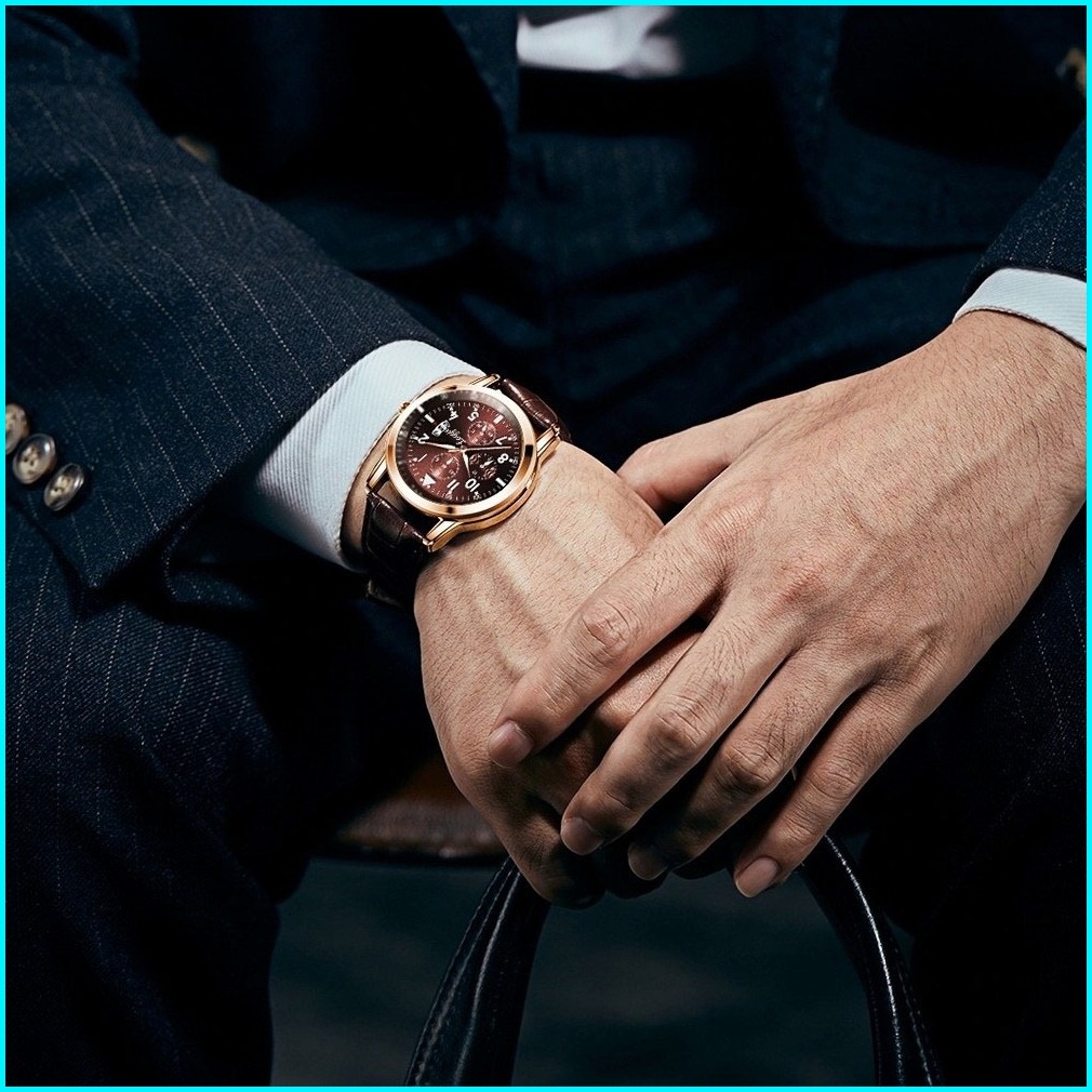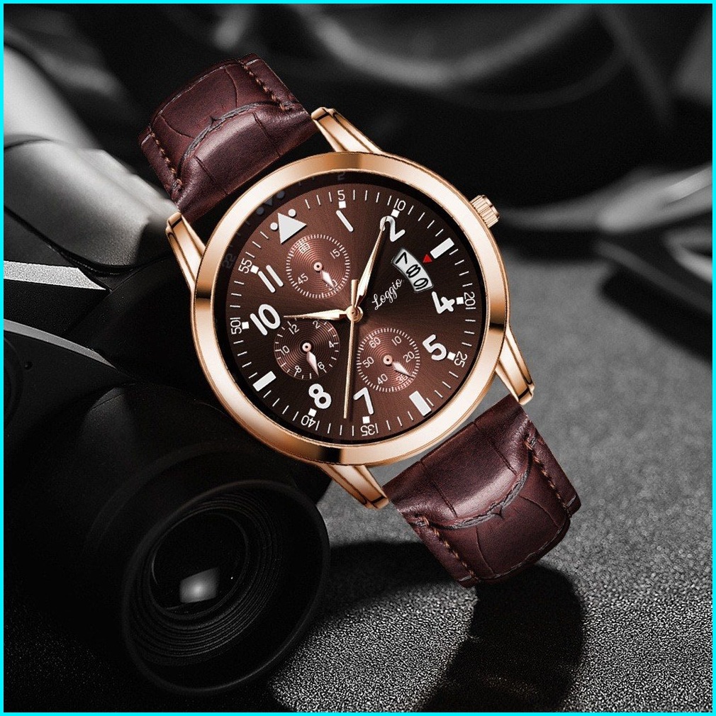 Loggio Jam Tangan Pria Lampu Malam Anti Air Kuarsa Tali Kulit Jam Tangan Cowok
