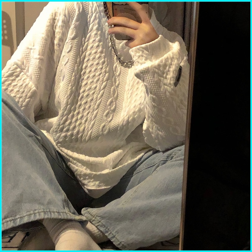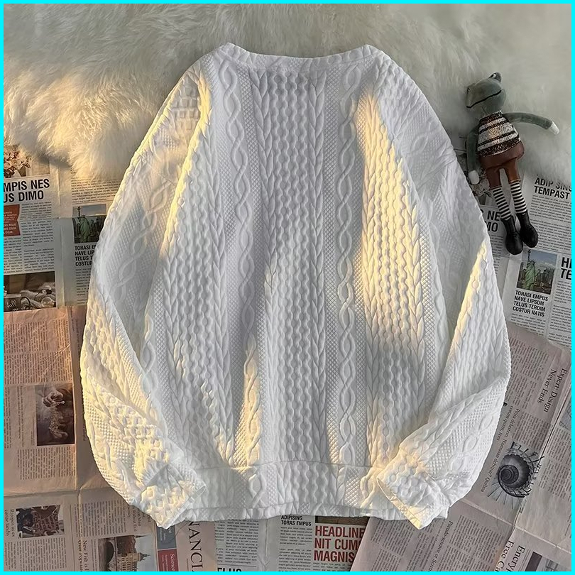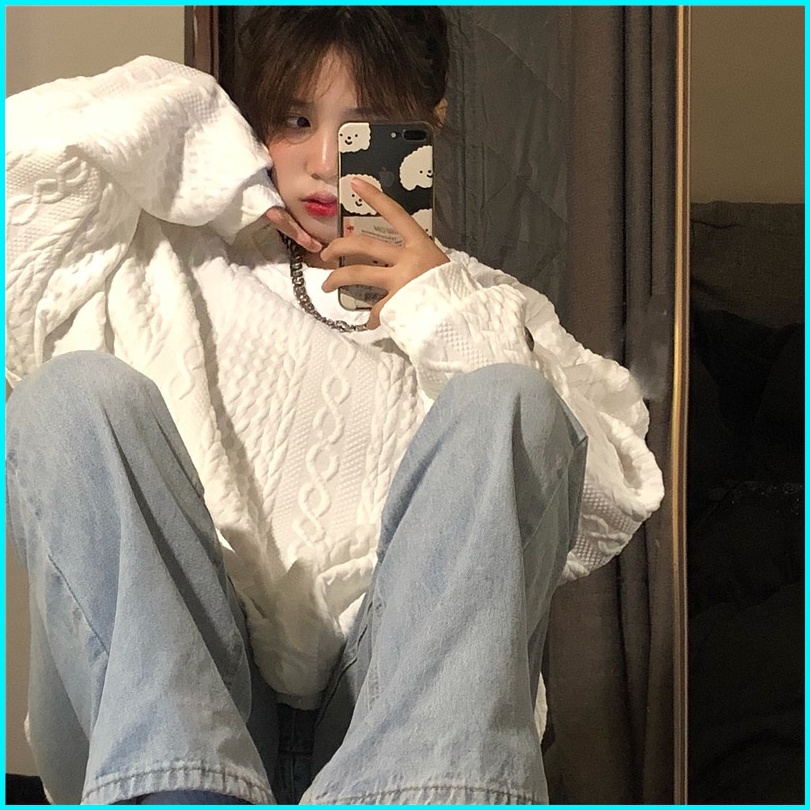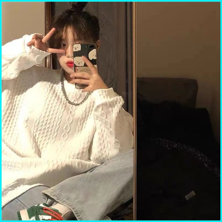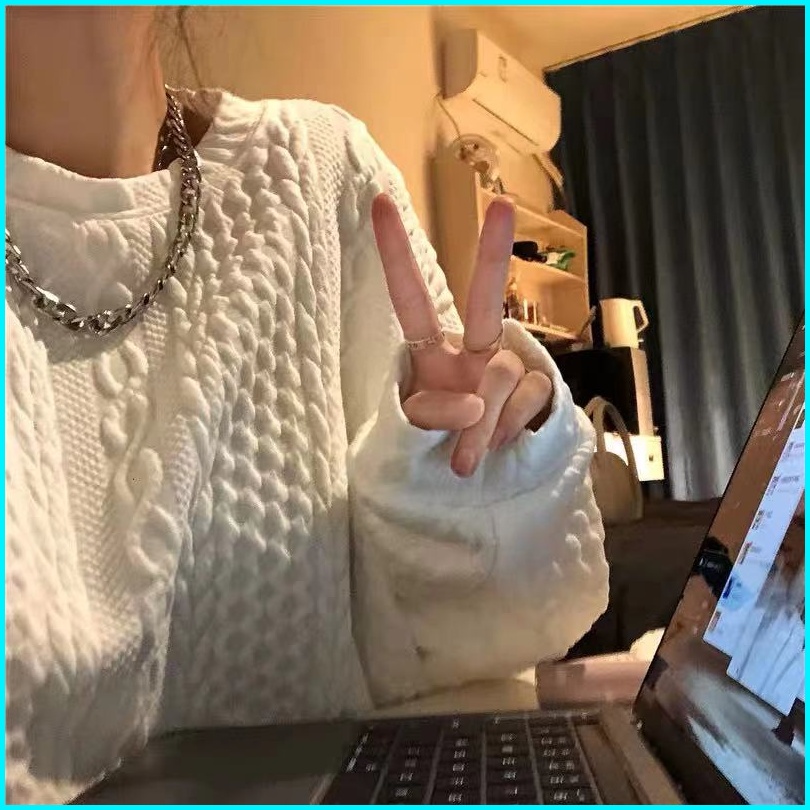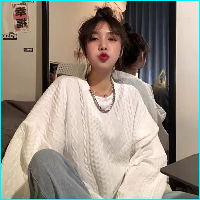 Po Floret Sweter Putih Longgar Atasan Lengan Panjang Wanita Fashion Ukuran Plus