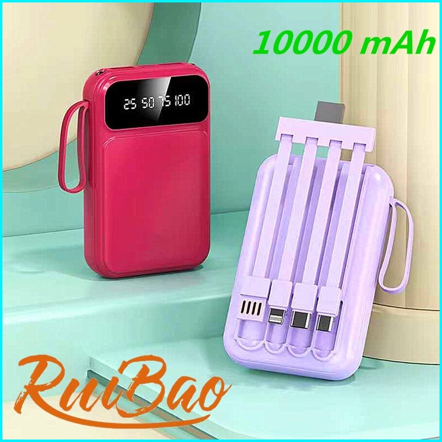 Ruibao Power Bank 10000 Mah 2.1 A Built In Cable Fast Charging 963