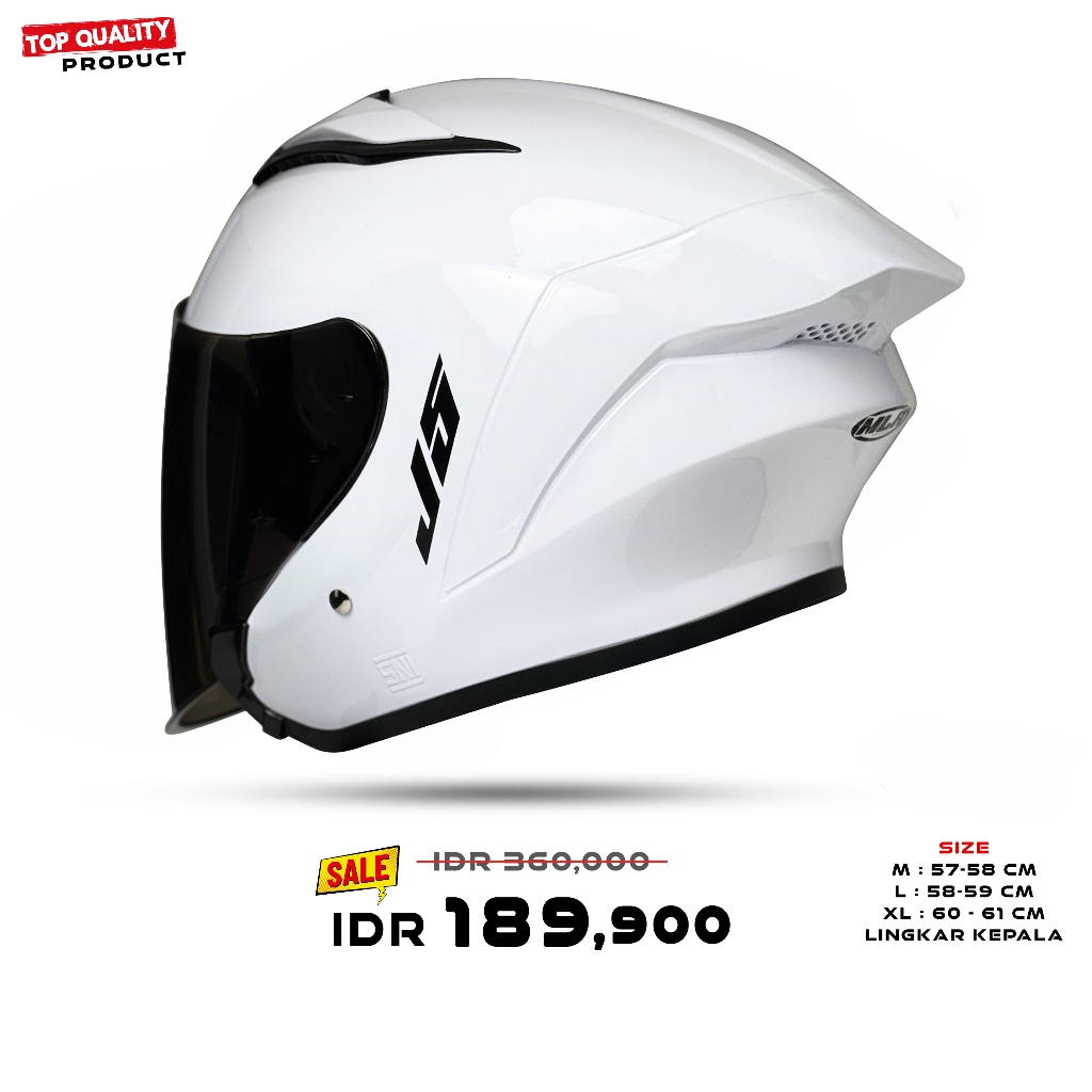 Helm Half Face MLA J5 GREY GLOSY Kaca Visor Bening | Helm Premium Untuk Pria Dan Wanita Dewasa