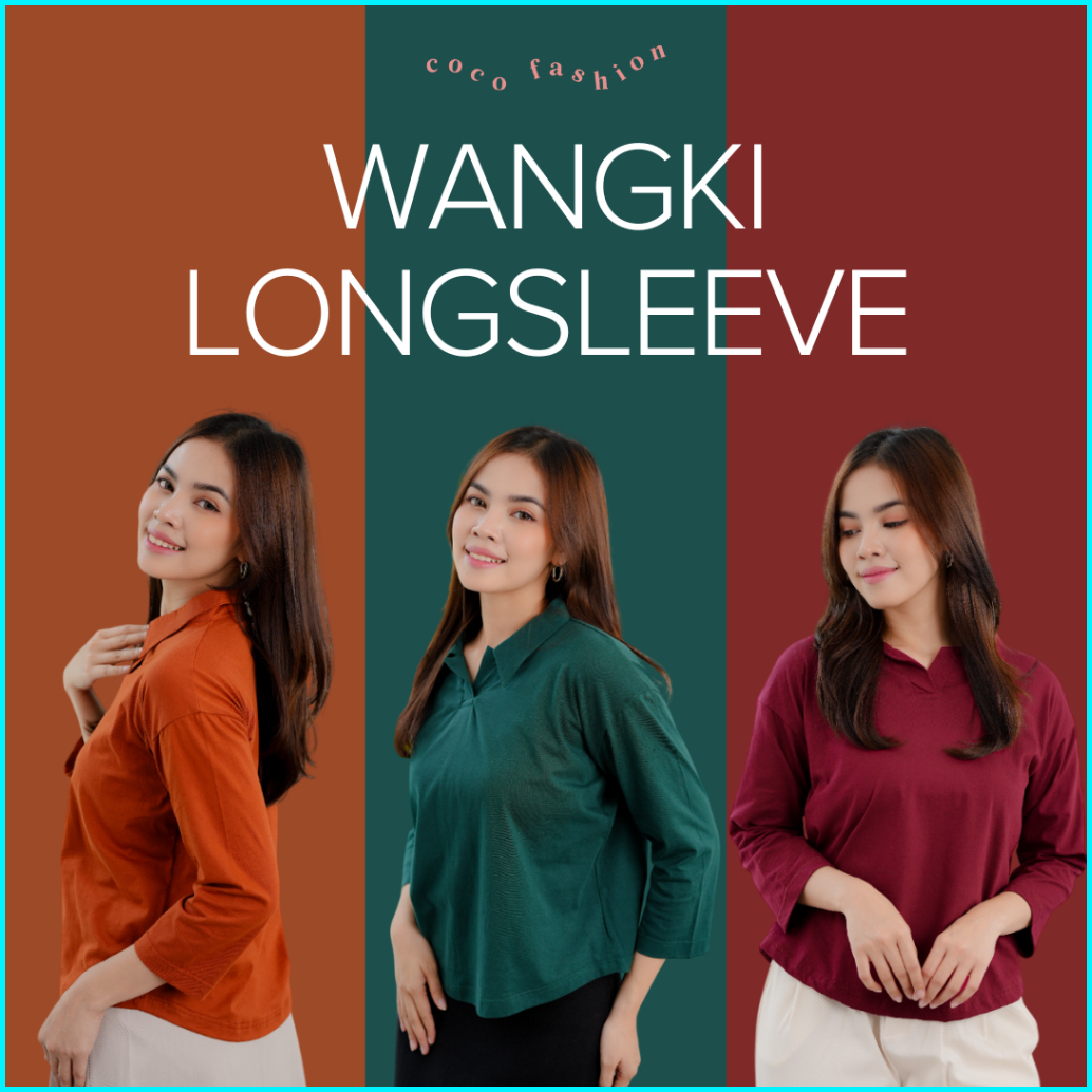 Atasan Wanita Kaos Kerah V-neck Wangki Long Sleeve Aera Korean Polo T-shirt Style Lengan 7 8 Cotton Combed Premium Size
