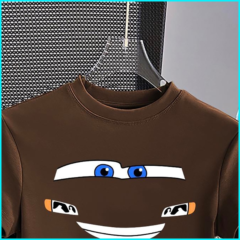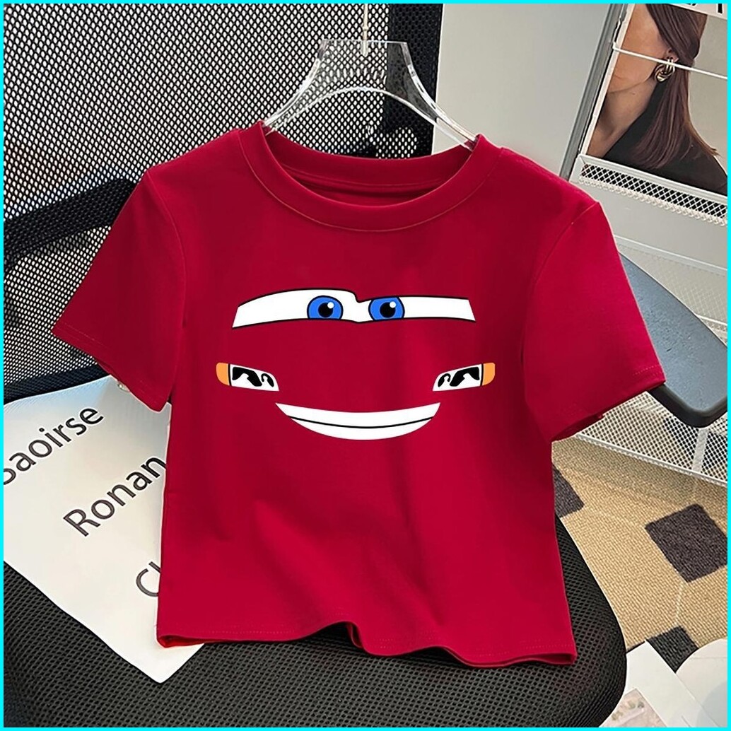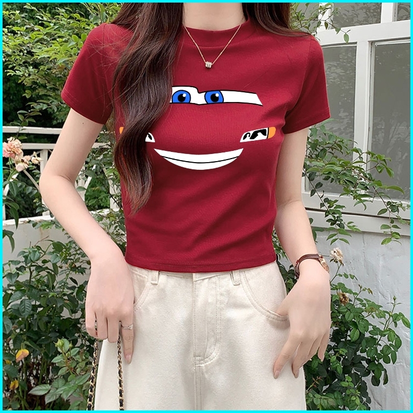 Kaus Ketat Lengan Pendek Bermotif Lightning Mcqueen Wanita Berwarna Coklat Baru