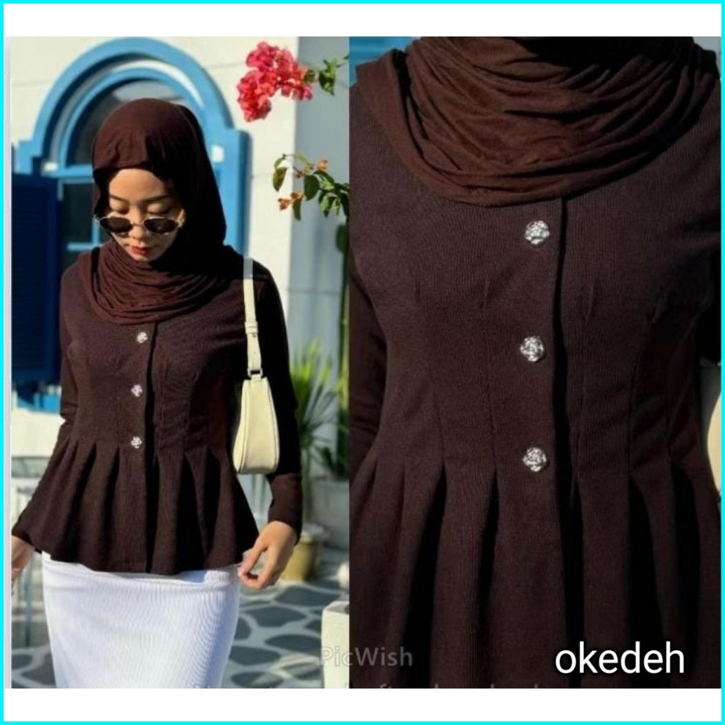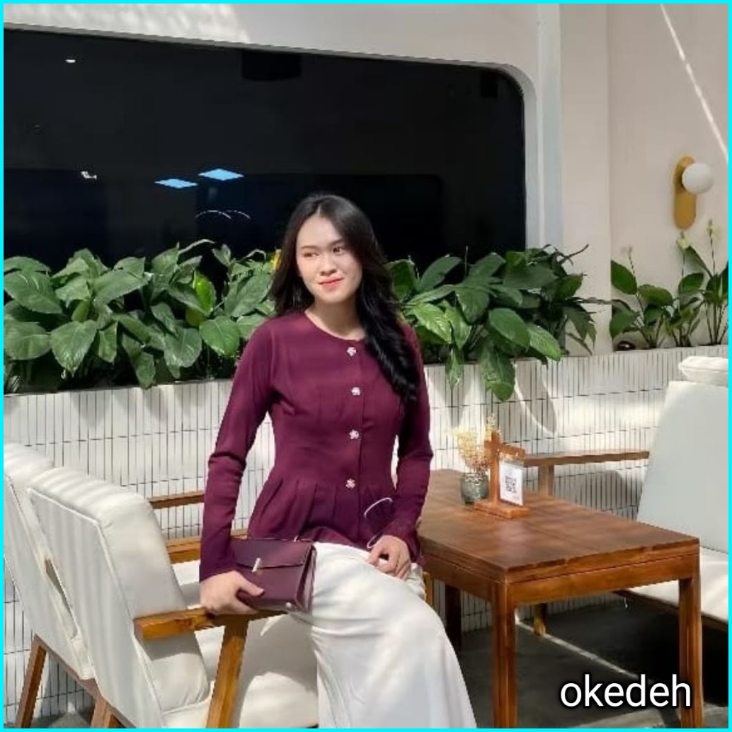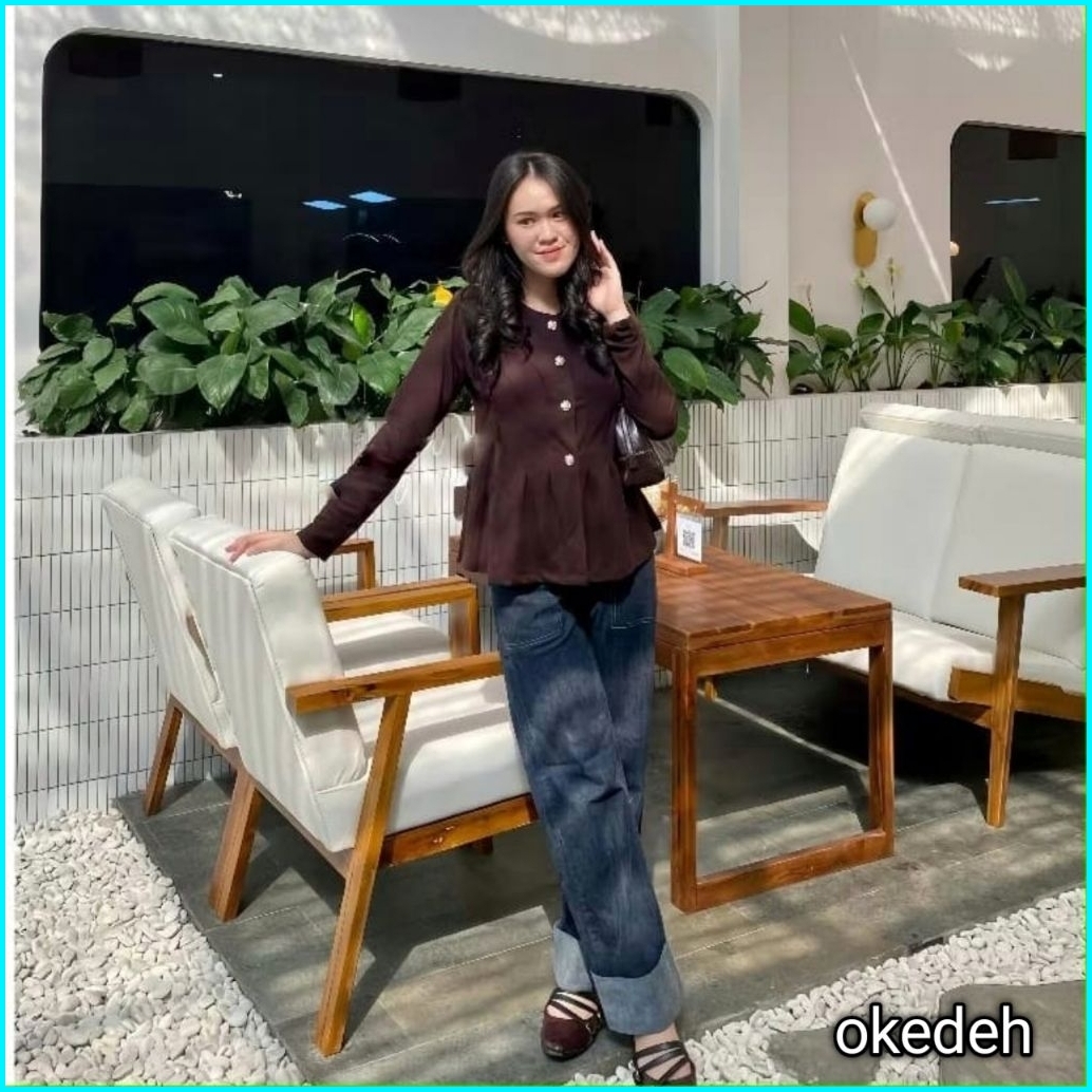 Vana Blouse Atasan Peplum Fit Body Knit Blouse Lengan Panjang Wanita