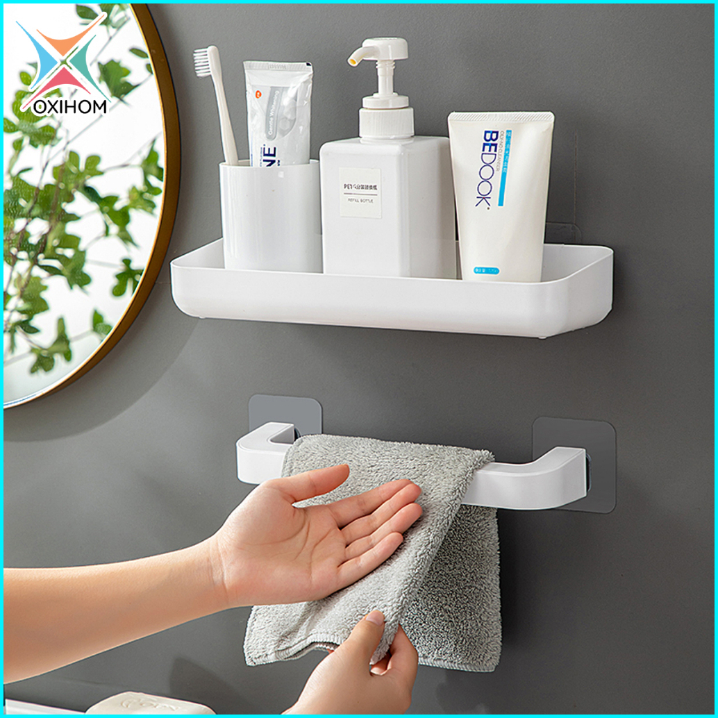 Oxihom Rak Gantung Kamar Mandi Dapur Tempel Plastik Rak Handuk Sabun
