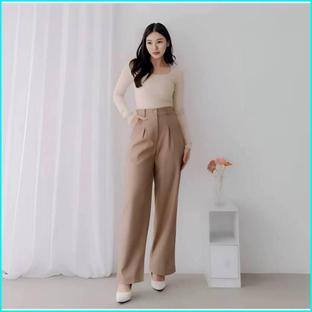 Zs - Viona Pants - Celana Kulot Wanita - Celana Anti Kusut - Highwaist Celana Kerja Kantor Casual Loose Pants Trouser Pr