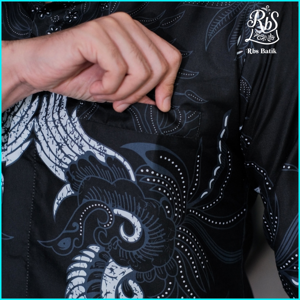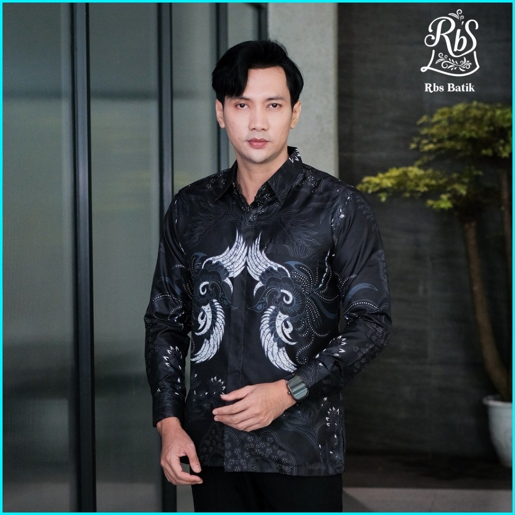 Rbs Batik - Kemeja Batik Pria Aqiel Slimfit Lapis Furing Warna Hitam Putih Motif Sayap Cendrawasih