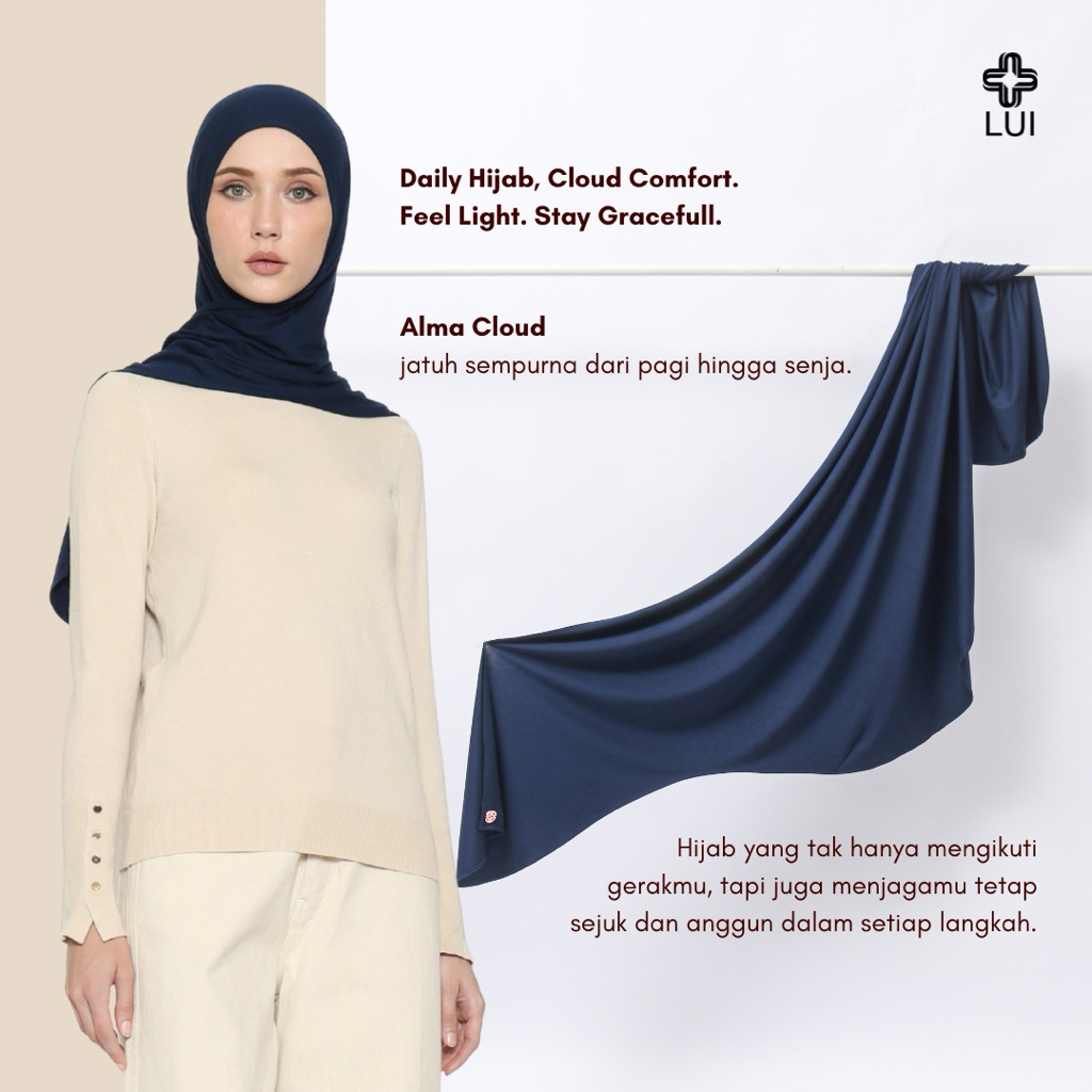 Lui - Alma Cloud Pashmina Oval Daily Series - Rayon Cloud Cooltech Hijab Instant Dengan Jahit Dagu Semi Bergo & Tanpa Ja