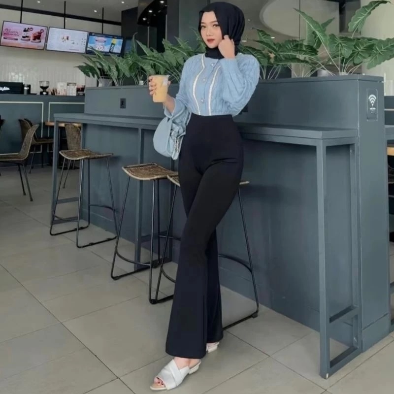 OLISE Celana Cutbray Wanita Scuba Highwaist Bahan Tebal & Stretch, Modis Kekinian