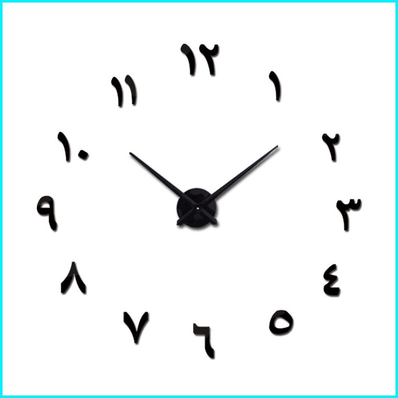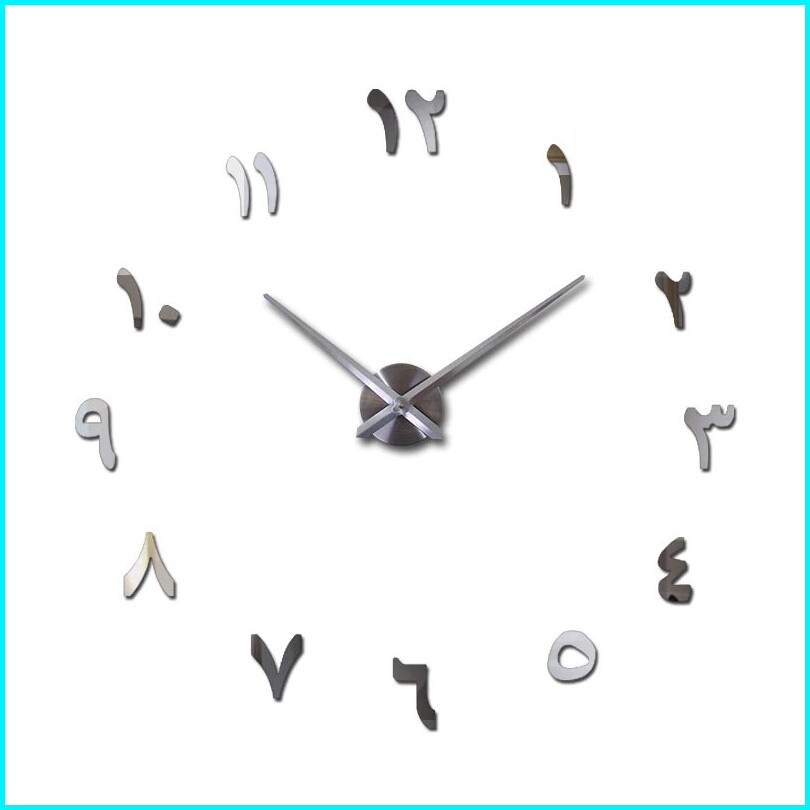 Jam Dinding Besar Diy Mewah Unik Model Angka 3d Arab Kaligrafi Jam Tembok Arabic Dekorasi Rumah Kamar Warna Hitam Silver