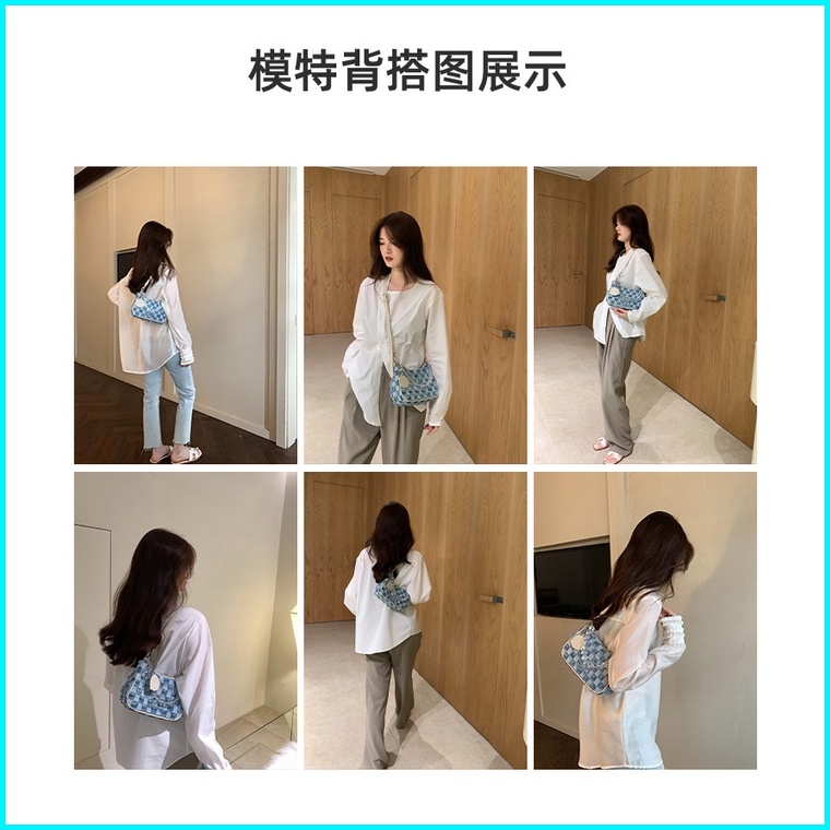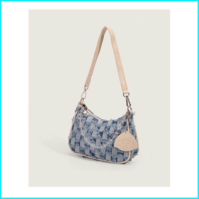 Bao030 Tas Wanita Denim Retro Tas Bahu Jinjing Half Moon Underarm Tas Vintage Tas Elegan Tas Pesta