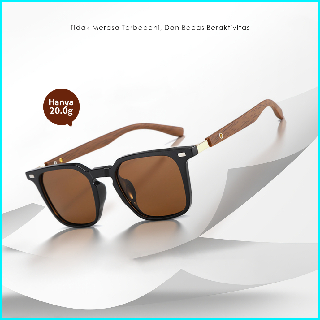 Colore.in Kacamata Hitam Kotak Pria Wanita Anti Uv Tungkai Kayu Wood Tr90 Eco-life Sunglasses 280876