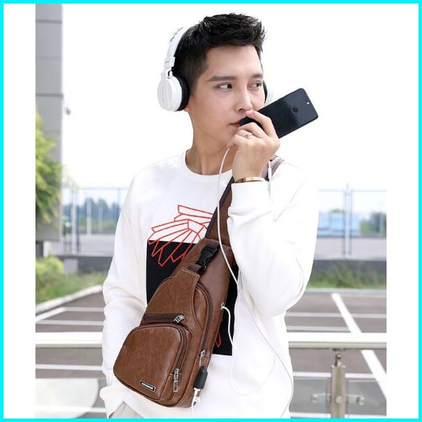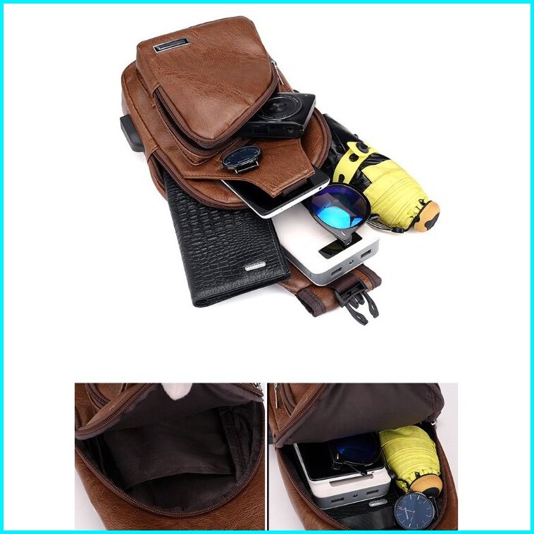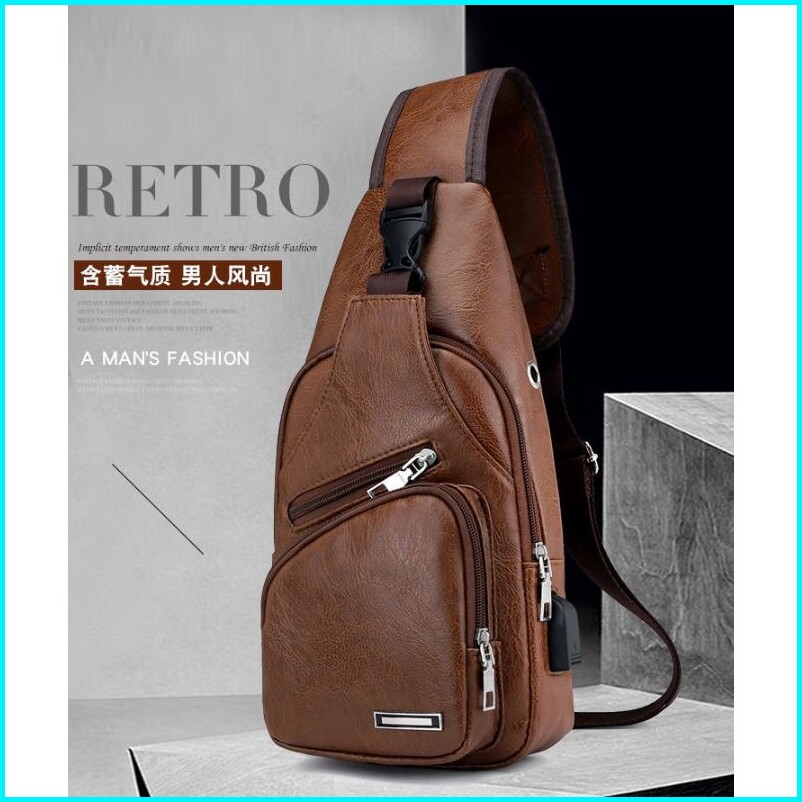 Tas Selempang Pria Kulit Coklat Ronaldo Asli Ta003b7 Usb Murah Promo Hp Dada Sling Bag Batam