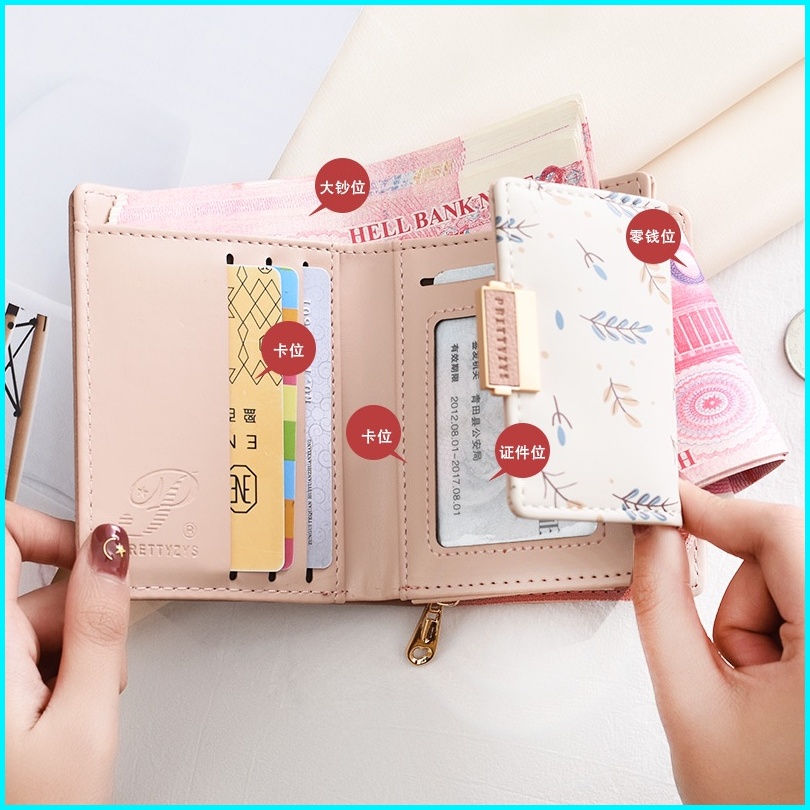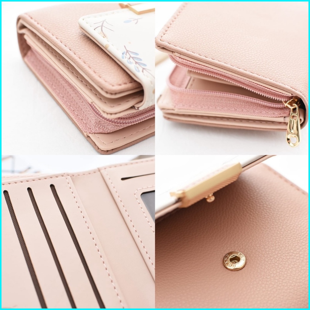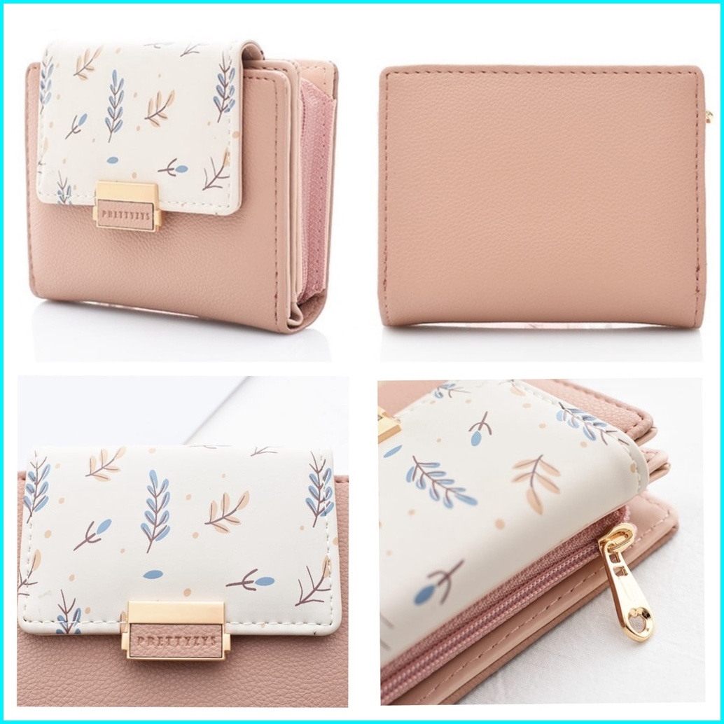 Dompet Lipat Wanita Prettyzys Ori Kulit Pink Ponami Wa513p3 Korea Lucu Kecil Premium Slot Kartu Uang Resleting Koin Fash