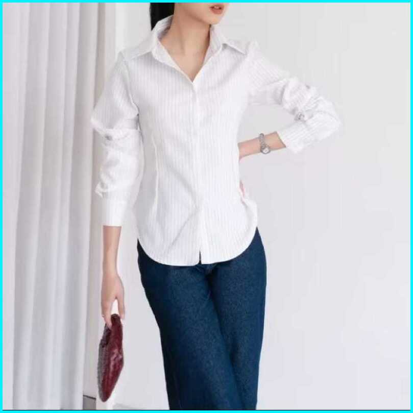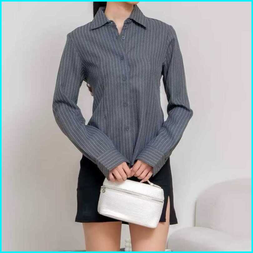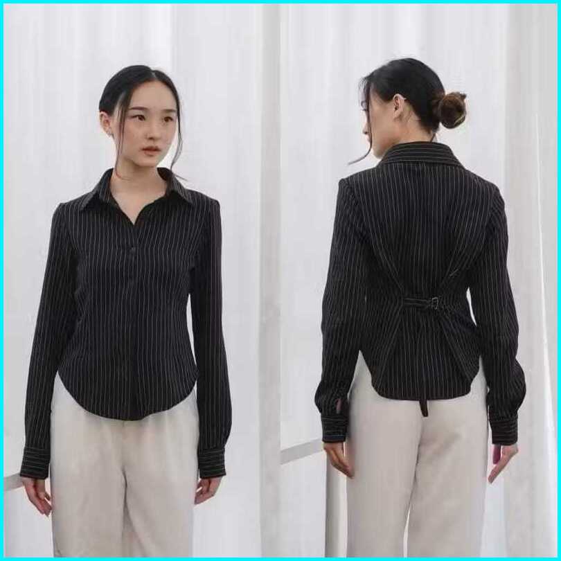 Luna Stripe Kemeja Fitted Atasan Wanita Stripe Salur Basic
