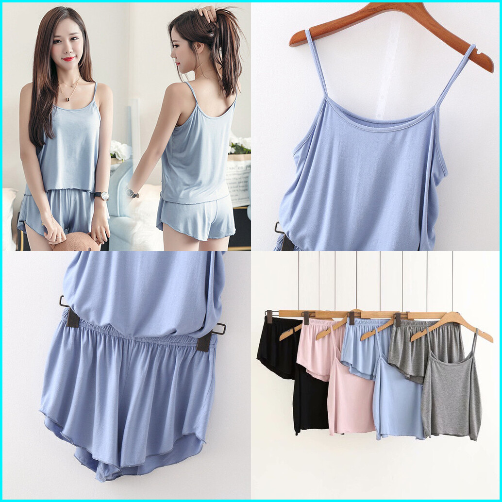 Yipao 900 Baju Tidur Set Wanita Sexy Camisole Dengan Celana Pendek Piyama Wanita Kamisol Setelan Korea Style Size Ukuran