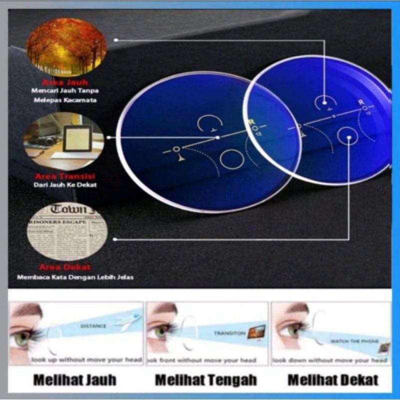 kacamata progresif baca dan jalan tanpa batas bluecromic Drive anti silau/ kacamata pria progresif bluecromic anti radiasi blueray photocromic bluecromic night Drive
