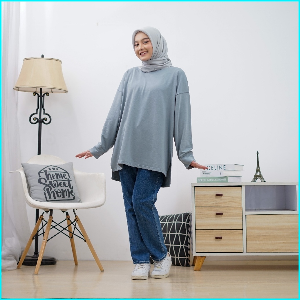 Regia Top - Tshirt Basic Longsleeve Oversize Top Hijab - Kaos Wanita Lengan Panjang - Kaos Oblong Simple Outfit - Atasan