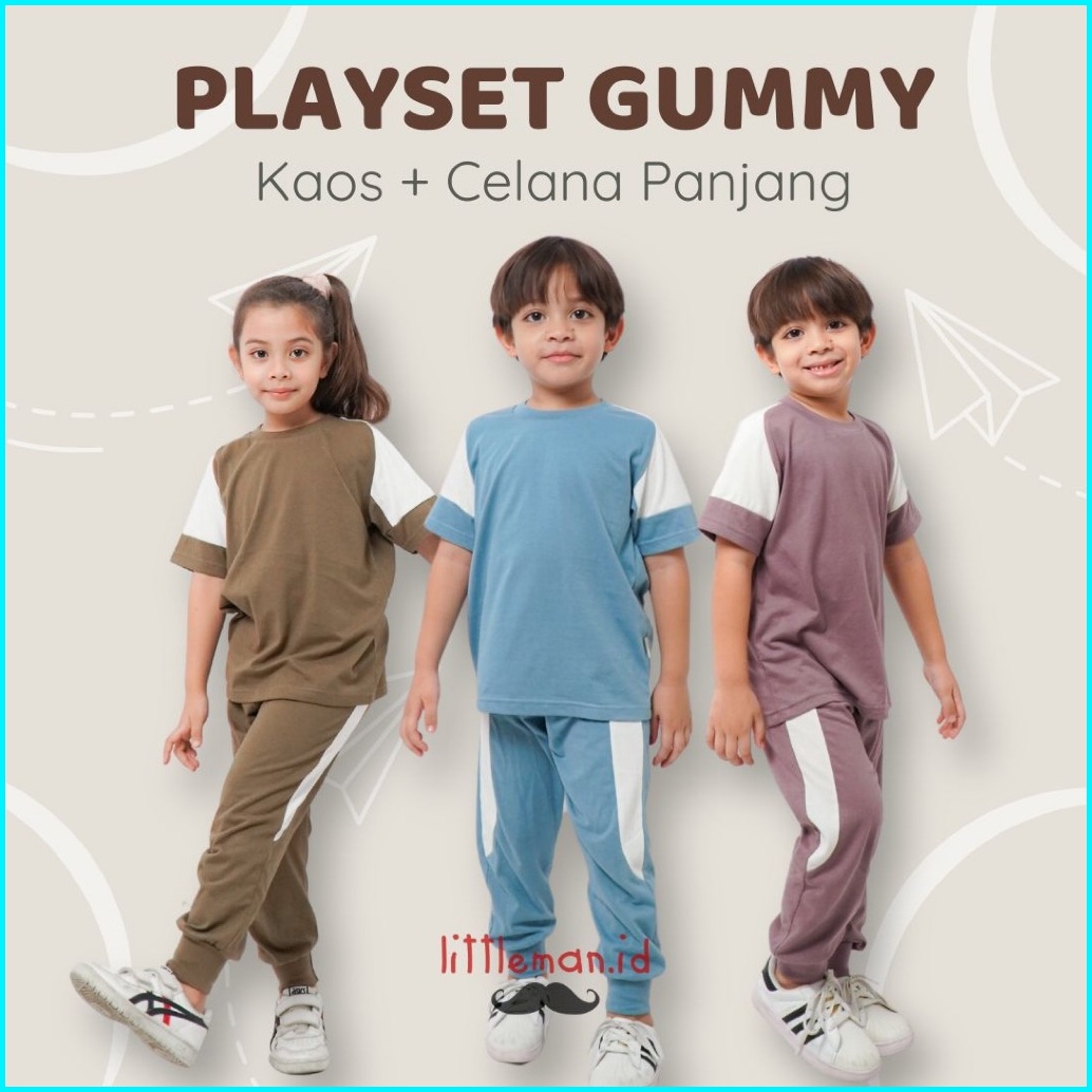 Playset Anak Gummy Series Setelan Kaos Baju Celana Panjang Anak Laki Perempuan Premium Littleman.id