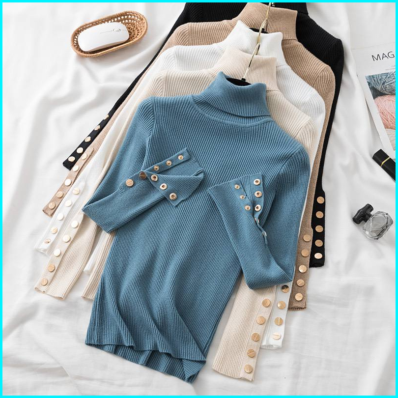 Standar Jumbo Sweater Rajut Wanita Turtleneck Zia Button
